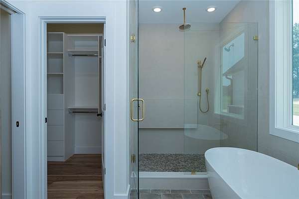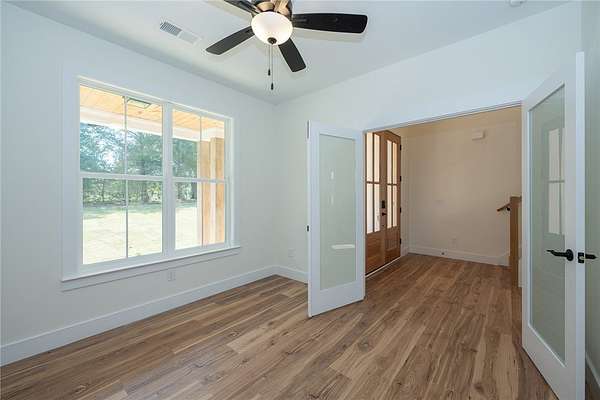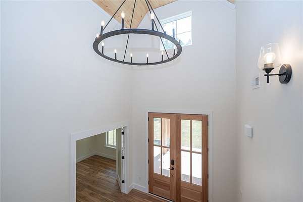 Nestled on a sprawling 2.16-acre lot, this contemporary farmhouse radiates timeless appeal with a seamless fusion of rustic allure and modern sophistication. The exterior captivates with a classic board-and-batten facade, complemented by a cozy front porch supported by sturdy Cyprus beams, inviting you to unwind in shaded comfort. A sleek, 8-foot front door opens into a grand foyer, where a 2-story foyer lined with tongue-and-groove planking creates a sense of airy elegance that flows into the open-concept living and dining areas. Rich, wide-plank LVP flooring stretches across the main living spaces, offering warmth and durability with a refined, natural aesthetic. The heart of the home is the expansive, window-filled great room, where a dramatic shiplap-clad fireplace stretches from floor to ceiling, joined with timber floating shelves and custom built-ins, serving as a cozy yet commanding focal point. Adjacent, the gourmet kitchen is designed for both function and flair, featuring honed quartz countertops, a generous farmhouse sink, and a spacious island. Custom cabinetry, accented by gold hardware, pairs beautifully with a herringbone-patterned tile backsplash, while top-of-the-line stainless steel appliances, including a built-in oven, cater to culinary enthusiasts. A hidden walk-in pantry with built-in shelving and a coffee station adds practicality and charm, perfect for hosting gatherings or quiet mornings. The primary suite, thoughtfully positioned for seclusion at the home's rear, is a sanctuary of luxury. Its ensuite bath boasts dual vanities with quartz tops, a sleek soaking tub, and a spacious walk-in shower with multiple shower heads and intricate tilework. A private water closet and an oversized closet with custom organizers enhance convenience, while a discreet sliding pocket door connects directly to the laundry room equipped with additional cabinetry for functional storage. The main level also includes a fourth bedroom, a versatile space with ample natural light and wide-plank LVP flooring, perfect as a guest suite or home office, complete with a spacious closet . The home's upstairs layout offers a loft and two additional bedrooms, each with ample natural light and built-in closet shelving, sharing a stylish bathroom featuring a single vanity, tile flooring, and a tile-surround tub/shower. Outside, a 12x14 Trex rear deck and a 12x12 covered/screened porch provide an ideal setting for outdoor entertaining or serene evenings under the stars. The property includes an attached 22x21 garage and a detached, fully finished 20x20 workshop/garage, ideal for projects or extra parking. This modern farmhouse harmonizes rustic warmth with contemporary finesse, offering a tranquil retreat. * Home has been preappoved by DES ( DHEC) for a pool * Builder offers closing costs for using preferred lender and closing attorney * This home is located in an USDA Eligible area
