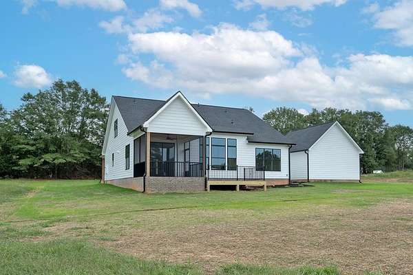 ASK US ABOUT OUR BUILDER FLEX CASH. WE CAN BUY YOUR INTEREST RATE DOWN AND/OR COVER YOUR CLOSING COSTS! Nestled on a sprawling 2.16-acre lot, this contemporary farmhouse radiates timeless appeal with a seamless fusion of rustic allure and modern sophistication. The exterior captivates with a classic board-and-batten facade, complemented by a cozy front porch supported by sturdy Cyprus beams, inviting you to unwind in shaded comfort. A sleek, 8-foot front door opens into a grand foyer, where a 2-story foyer lined with tongue-and-groove planking creates a sense of airy elegance that flows into the open-concept living and dining areas. Rich, wide-plank LVP flooring stretches across the main living spaces, offering warmth and durability with a refined, natural aesthetic. The heart of the home is the expansive, window-filled great room, where a dramatic shiplap-clad fireplace stretches from floor to ceiling, joined with timber floating shelves and custom built-ins, serving as a cozy yet commanding focal point. Adjacent, the gourmet kitchen is designed for both function and flair, featuring honed quartz countertops, a generous farmhouse sink, and a spacious island. Custom cabinetry, accented by gold hardware, pairs beautifully with a herringbone-patterned tile backsplash, while top-of-the-line stainless steel appliances, including a built-in oven, cater to culinary enthusiasts. A hidden walk-in pantry with built-in shelving and a coffee station adds practicality and charm, perfect for hosting gatherings or quiet mornings. The primary suite, thoughtfully positioned for seclusion at the home's rear, is a sanctuary of luxury. Its ensuite bath boasts dual vanities with quartz tops, a sleek soaking tub, and a spacious walk-in shower with multiple shower heads and intricate tilework. A private water closet and an oversized closet with custom organizers enhance convenience, while a discreet sliding pocket door connects directly to the laundry room equipped with additional cabinetry for functional storage. The main level also includes a fourth bedroom, a versatile space with ample natural light and wide-plank LVP flooring, perfect as a guest suite or home office, complete with a spacious closet . The home's upstairs layout offers aloft and two additional bedrooms, each with ample natural light and built-in closet shelving, sharing a stylish bathroom featuring a single vanity, tile flooring, and a tile-surround tub/shower. Outside, a 12x14 Trex rear deck and a 12x12 covered/screened porch provide an ideal setting for outdoor entertaining or serene evenings under the stars. The property includes an attached 22x21 garage and a detached, fully finished 20x20workshop/garage, ideal for projects or extra parking. This modern farmhouse harmonizes rustic warmth with contemporary finesse, offering a tranquil retreat. * Home has been preappoved by DES (DHEC) for a pool * Builder offers closing costs for using preferred lender and closing attorney * This home is located in an USDA Eligible area