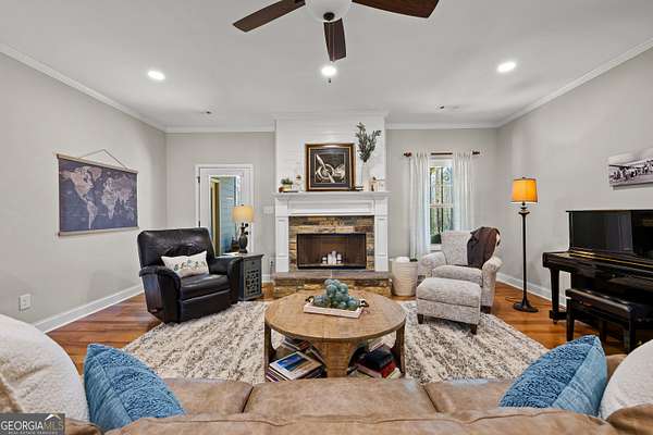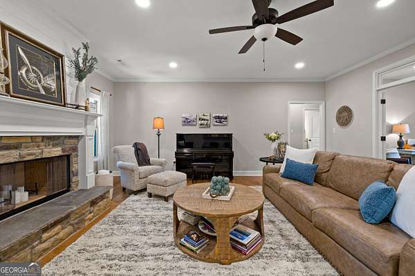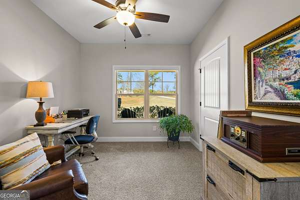 Amazing 4 bedroom 3 bath home in Senoia is ready for you to call it home! A feeling of peace and warmth welcomes as you explore all that this home has to offer. Inside, you will notice the layout allowing an easy flow from the chef's kitchen, living room, dining room and keeping room. The chef's kitchen provides abundant storage space in cabinetry, large walk in pantry, granite countertops and stainless steel appliances. This home offers a split bedroom plan with the primary bedroom suite and private office on one side of the home. Three secondary bedrooms are located on the other side of the home. The primary bedroom is HUGE and has a french door access to the back yard. The primary bedroom suite also offers a double vanity, soaking tub, separate shower and very large closet. There is a private office en-suite next to the primary bedroom with access to the garage perfect for work from home office. The laundry room is located in a hallway next to the garage. Enjoy a morning cup of coffee on the rocking chair front porch or enjoy a lazy afternoon on the hanging bed swing or grilling and entertaining on the covered back porch. The fun continues with a fire pit in the back yard. This property provides privacy with plenty of space between neighbors.
