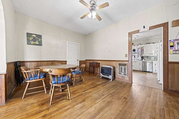Est $1,485/moCreekside property with a 1915 farmhouse and multiple outbuildings. The home will require significant renovation and is being sold as-is. Property is located in the 100-year flood plain and flood insurance will be required. Price reflects condition and location.