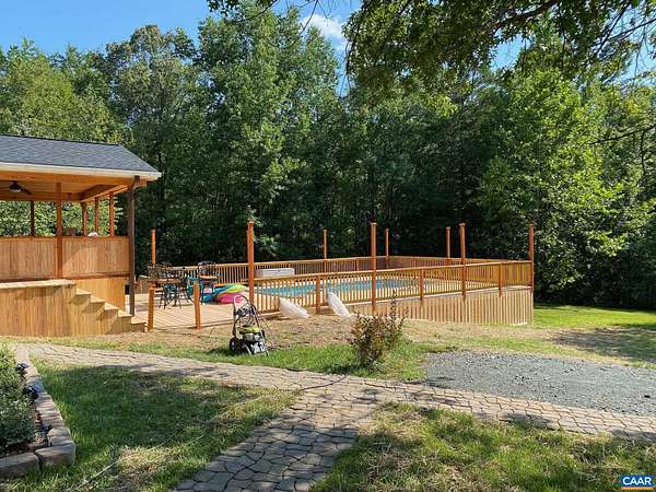 Beautifully renovated, this home offers the perfect blend of privacy and convenience—located just 5 minutes from Zion Crossroads, 25 minutes to Charlottesville, and 45 minutes to Richmond. Step inside to find a spacious and inviting layout, anchored by a cozy wood-burning fireplace. The kitchen is designed for both everyday living and entertaining, offering granite countertops, appliances 5 years old and wine cooler. The primary suite provides a relaxing retreat, private en suite bath complete with a jetted tub and separate walk-in shower. A split-bedroom floor plan offers added privacy, with a total of four bedrooms to accommodate family, guests, or home office needs. Enjoy outdoor living at its best from the screened-in porch, overlooking a large pool—perfect for entertaining or relaxing all summer long. The spacious pool deck includes additional storage and plenty of room for seating and gatherings. Additional features include a two-car garage with a lean-to for extra storage. Trex decking on the back deck, and thoughtful upgrades throughout. The home is equipped with instant hot water, a roof and appliances less than 5 years old. Energy-efficient Low-E single-hung windows replaced approximately 4 years ago.