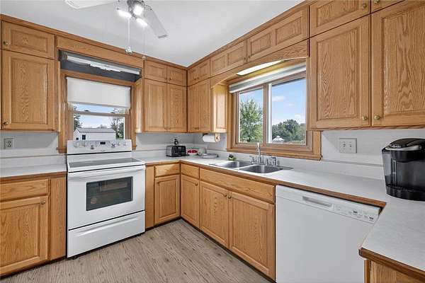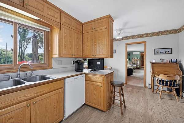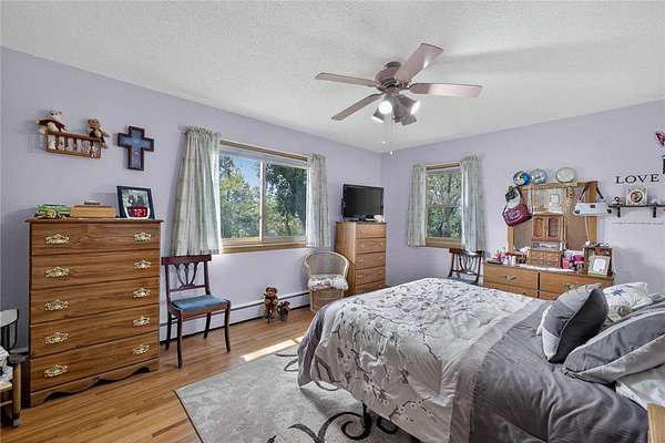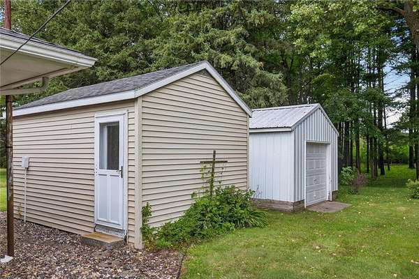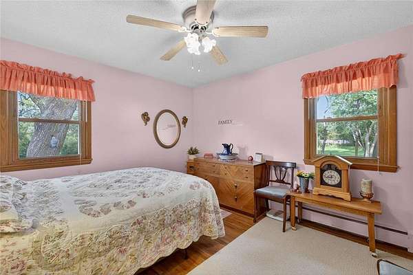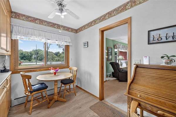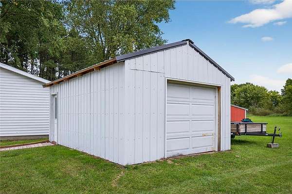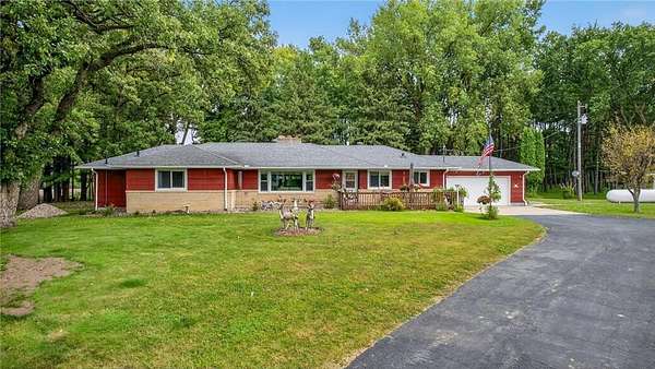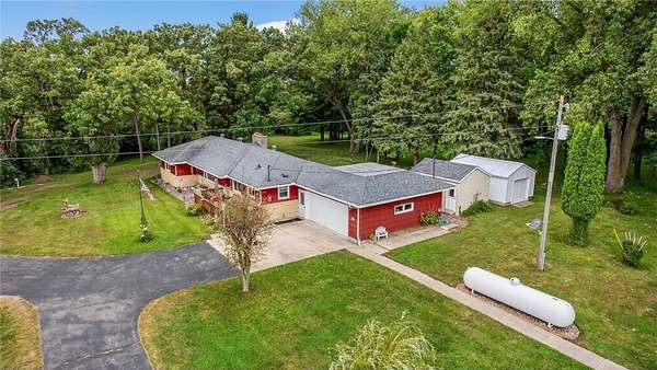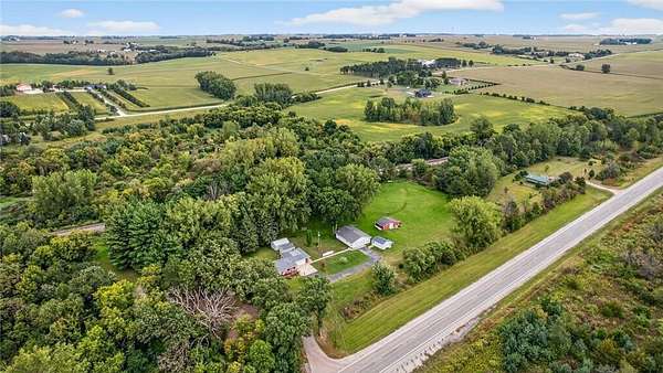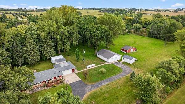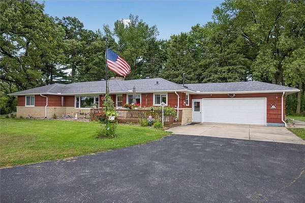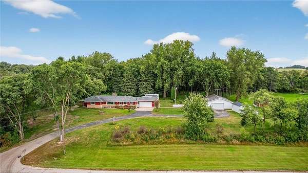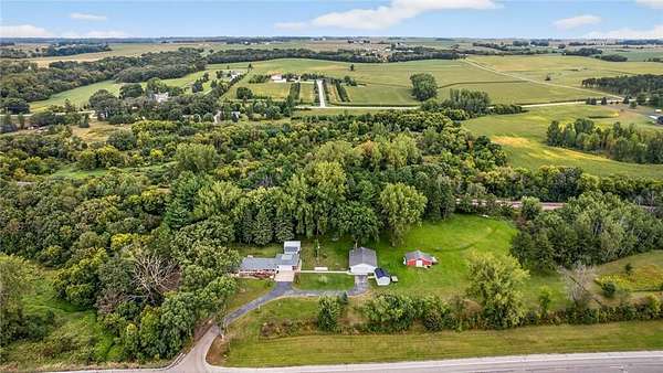 Spacious ranch-style home offering over 3,000 sq. ft. of living space on a wooded 4+ acre lot, conveniently located minutes from Rochester and Eyota. Main floor features 3 bedrooms with hardwood floors and 3 bathrooms. Recent updates include vinyl-clad windows, laminate flooring in the eat-in kitchen and formal dining room, cabinetry, hot water boiler, roof, central air, and a brand-new septic system. Attached 2-car garage plus extensive outbuildings: 1,200 sq. ft. heated garage/shop, two additional detached garages, storage shed, and barn--providing over 3,000 sq. ft. of garage and storage space. Adjacent to Chester Woods Park with access to camping, swimming, fishing, and hiking.