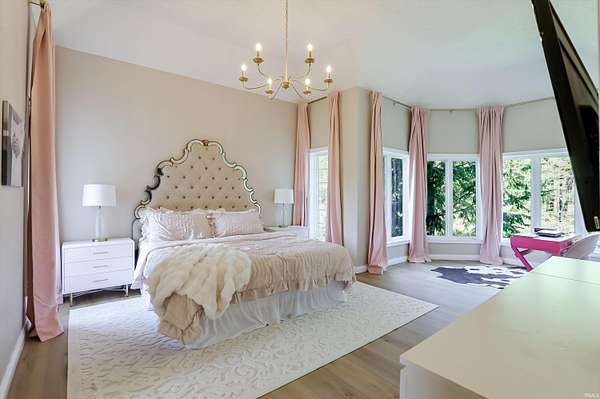 This custom-built 1.5-story home with a full basement sits on over 5 acres! The main level features multiple open-concept living spaces with beautiful views of the private wooded surroundings, a spacious kitchen with new appliances, and a primary suite with a large spa-style bath and an oversized walk-in closet. Upstairs, you’ll find three additional large bedrooms and a full bath. The finished lower level is a wonderful entertainment space, complete with a built-in bar and versatile spaces for office and media use. It also includes a bonus room that serves as a fifth bedroom, an adjacent bath, and a large storage room. This property has many features including dual zone HVAC, heavily wooded land with ATV and walking trails and a large 3-car attached garage. Recent updates over the past five years include a new upper-level HVAC unit, new propane tankless water heater, fresh interior paint, all new flooring, updated baths, a new roof, updated fireplace logs, refreshed landscaping, new garage door openers, paved road access, new refrigerator, microwave, dishwasher, and a new washer and dryer.