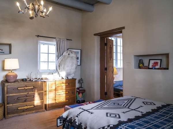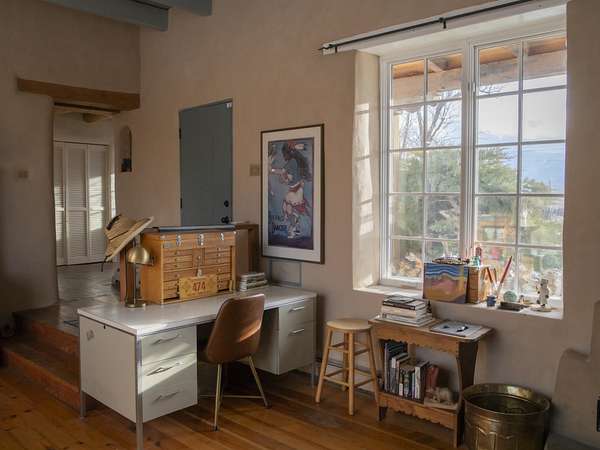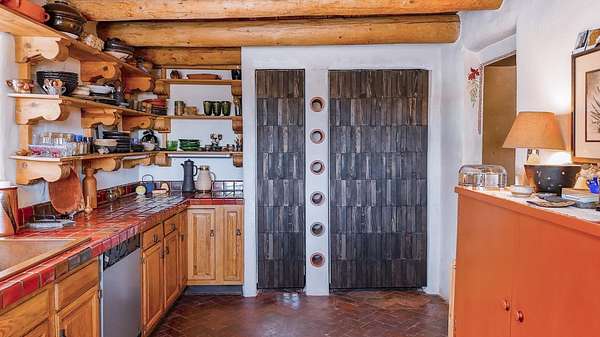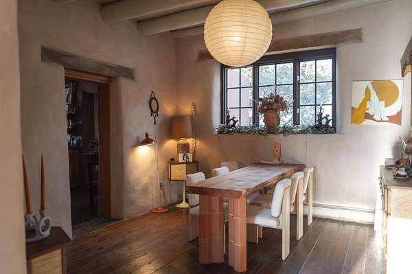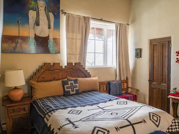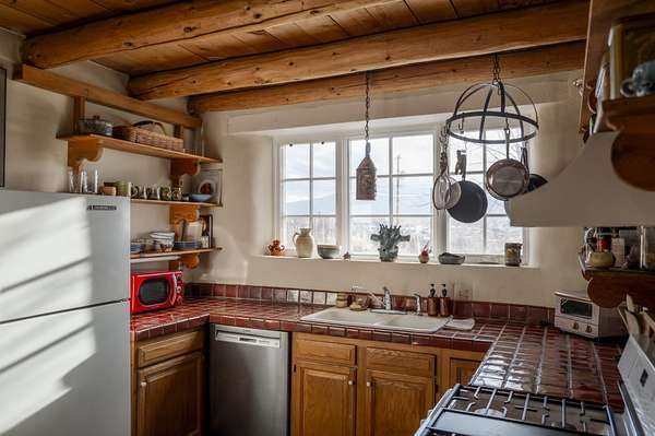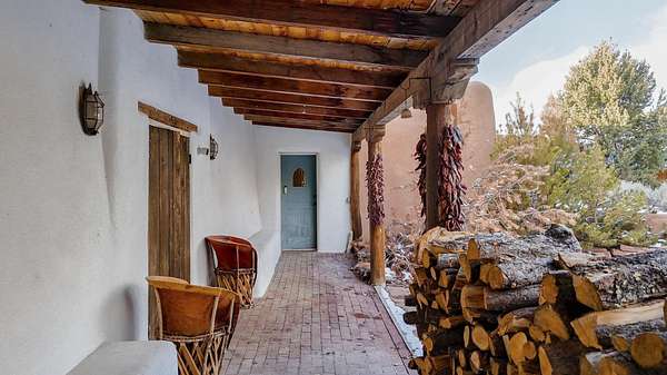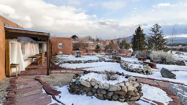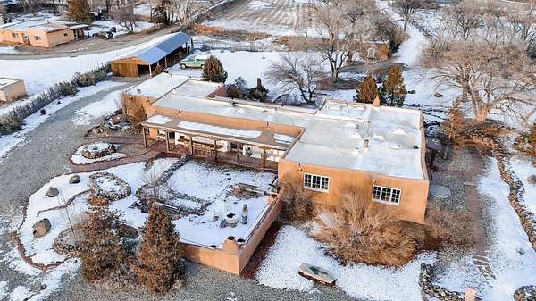 Tucked away in Ranchos de Taos, this exceptional adobe compound is ideally located along a ridge line for views, and in one of the oldest and most storied parts of Taos. Just minutes from the iconic San Francisco de Asis Church, and along the gateway to the scenic High Road to Taos, the property also offers easy access to Taos Plaza, Ranchos Plaza, Angel Fire and the Taos Country Club to the south. The feeling of History is unmistakable in this timeless Northern New Mexico Hacienda, situated on 4.61 acres of irrigated land, and a part of the ancient acequia water system that flows throughout the Taos valley. Originally built in the 1830s, and once home to renowned Modernist painter Andrew Dasburg, the property thoughtfully blends architectural authenticity and location, with modern comforts and upgrades for the next Owner. The main residence features six traditional kiva fireplaces, thick adobe walls, soft plaster finishes, arched doorways, Built-in wall nichos and bancos, and handcrafted details throughout. Upgraded Sierra Pacific windows frame expansive views of Taos Mountain and the surrounding Sange de Cristos. The main house is over 2,700 SF and includes three bedrooms and four baths. The country kitchen includes, hand-tiled counters, herringbone brick floors, exposed beams, open shelving, upscale appliances, and a vintage-style gas range. Multiple living and dining spaces with traditional kiva fireplaces, provide flexibility for entertaining, creative use, or quiet retreat. Baths feature artisan details with Saltillo tile floors, custom-painted sinks, updated fixtures, and tile accents. In addition to the main house, this expansive compound includes a private 935 SF adobe guesthouse. The one bedroom, 1.5 bath casita is filled with natural light, has a large kitchen, and two kiva fireplaces! It's perfect for a creative studio or workshop, living quarters for a parent or older children, visitors, or even a rental for extra income. Outdoor living is a hallmark of the Taos lifestyle, and this property is highlighted by a deep covered exterior portal with carved wood supports, brick floors, and multiple seating areas. The Landscaped grounds include flowering beds, extensive gardens, mature trees, and irrigation rights. Don't miss the lovely outdoor gathering space, with a large kiva fireplace, curved banco seating, and a flagstone patio and firepit. There is room for additional buildings and plenty of open space to enhance the feel of a Taos Oasis. Additional features of this home include a detached carport, a storage shed, fully fenced property, and Exceptional privacy-just minutes from the cultural heart of Taos, known for its galleries, history, and outdoor recreation. Call us today to arrange a private tour or for additional questions. We look forward to showing you just how iconic this property really is!