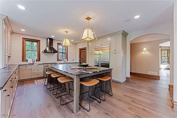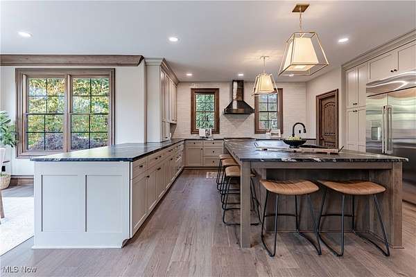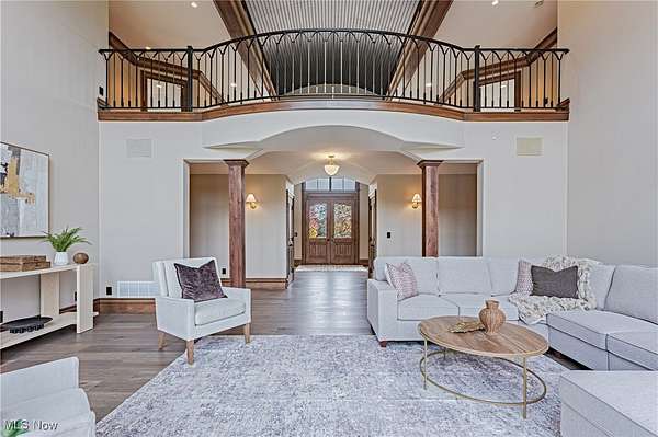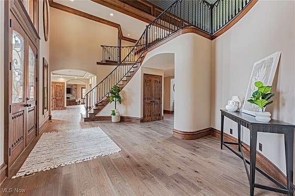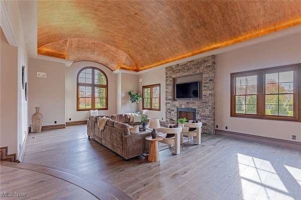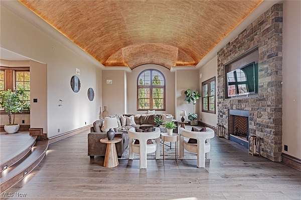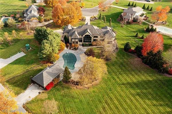 Situated on a pristine 3.34 acres on a cul-de-sac, this palatial, newly renovated French Country Estate will take your breath away. Soaring ceilings and refined finishes coalesce to create an atmosphere of sophistication and elegance- a perfect backdrop for both entertaining and everyday life. Throughout the home, sweeping windows and doors invite you to step out to multiple stone terraces and patios that surround the home. Lustrous dark hardwood flooring flows throughout the main level, and curved archways lead from the vaulted foyer into the formal dining room to the right, and a relaxed lounge area to the left. A vaulted great room features a fireplace and sliding doors that open to a gorgeous sun room that opens to a stone patio with a fireplace. The kitchen is a work of art, complete with rich leathered-granite countertops, an oversized island, top-of-the-line appliances, and custom cabinetry. Two powder rooms, a laundry room, and two bonus rooms perfect for home offices complete the first floor. Upstairs, there are 5 bedroom suites, including the stunning primary suite, which includes a dream closet with an island, a resort-style bath, and a private covered terrace off of the bedroom. All bedrooms have ample closet space, and two bedrooms have bonus loft areas. The party continues in the lower level, complete with a family room with a kitchenette, a two-tiered home theater, a billiards room, and a guest suite. Outside, the backyard oasis includes a sprawling heated pool and pool house, a large stone patio, and a 3+ car heated garage.