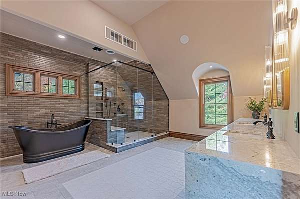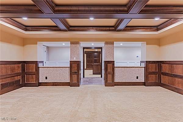 - Bar, Beamed Ceilings, Cathedral Ceilings, Coffered Ceilings, Crown Molding, Double Vanity, Eat In Kitchen, Entrance Foyer, Granite Counters, High Ceilings, Kitchen Island, Pantry, Recessed Lighting, Soaking Tub, Vaulted Ceilings, Walk In Closets, Wet Bar