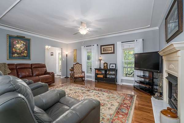 Set on more than 3 acres of beautifully maintained, park-like land, this inviting country home offers a rare combination of privacy, natural beauty, and everyday comfort. Located just 14 minutes to downtown, the property features mature trees, low-maintenance perennial gardens, and a circular, RV-friendly drive that create an easy sense of arrival, with multiple parking options and a second driveway providing added convenience. With the vibe of a personal retreat, you'll delight in the private, stocked pond and open green spaces that invite you to slow down and enjoy the peaceful setting. An idyllic spot to grow up, grow old, or simply get away from it all, this traditional-style 2-story home is warm and welcoming, with an open flow between the living areas that makes it easy to gather and relax. Inside, classic details include crown-molded ceilings, granite countertops, hardwood floors in the main living areas, and carpeted bedrooms for added comfort. The main level features a primary suite with a spacious bath, walk-in closet, and step-in shower, along with convenient main-floor laundry that supports easy everyday living. The finished basement is spotless and offers flexible space for hobbies, workout equipment, guests, or quiet evenings at home. Fiber optic internet ensures you can stay connected while enjoying the peaceful surroundings. Outdoor living shines here, from the wraparound covered porch to the screened porch and deck overlooking the grounds, making it easy to appreciate the views in every season. With thoughtful care throughout and a setting that truly feels like a private park, this property offers a lifestyle that is both serene and practical, all wrapped into one special place to call home.