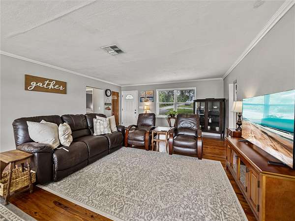 Discover a rare opportunity to own 3.39 acres of lakefront living on the shores of Lake Starr. This unique property features a 3 bedroom, 2 bath home offering stunning lake views and even a view of Bok Tower! The spacious open living and dining area are great for entertaining. You'll also enjoy a split bedroom layout, and charming pine hardwood floors. Recent upgrades include updated windows and doors, rewired electric, Hardie board siding, and additional insulation. New roof (2024) and new pump for well (2025)