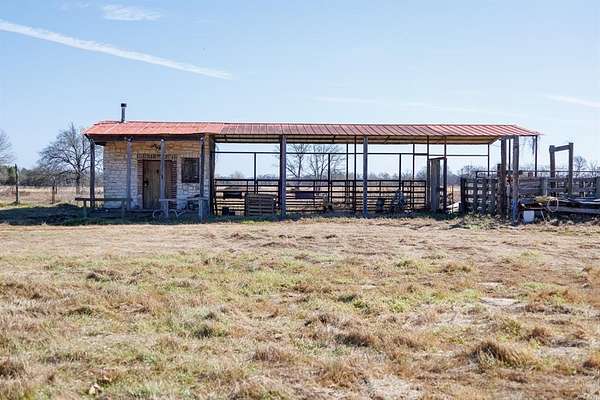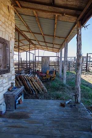 Improvements include a 200' x 40' hay barn, equipment shed, three covered horse stalls, tack room, and working pens. A historic home site, surrounded by mature live oak, cypress, and cedar trees, offers an ideal setting for a foreman's residence or future homesite. With over 140 feet of elevation change, the property also features multiple scenic hilltop building sites overlooking the ranch.