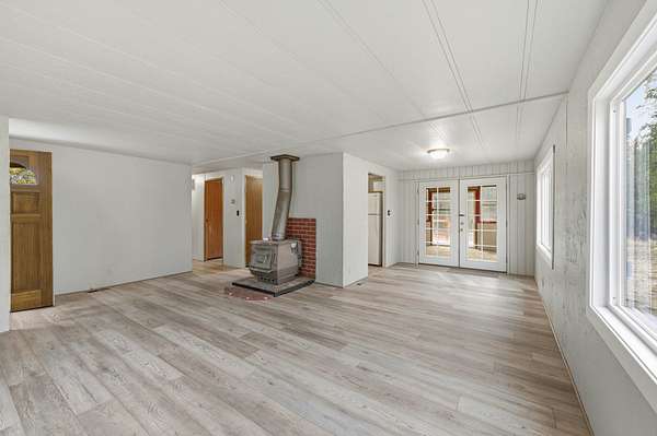 Freshly renovated 2-bedroom 2-bathroom home on a wooded 4.5-acre, corner lot in Antelope Meadows with a huge, detached garage and workshop area. This newly renovated home sits directly across the street from acres and acres of BLM land, making this an excellent opportunity to set up for horses or recreational fun, fun, fun!