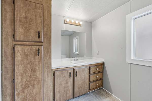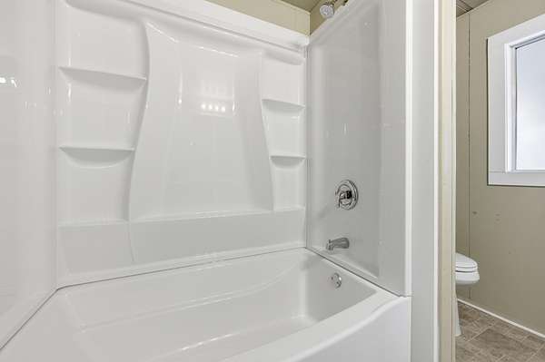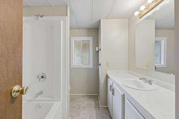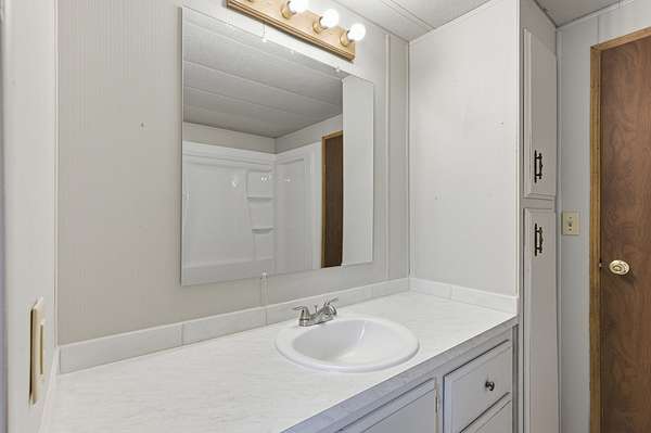 - Fiberglass Stall Shower, Laminate Counters, Shower/Tub Combo