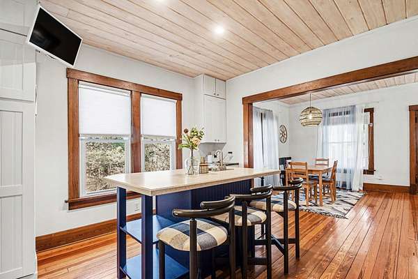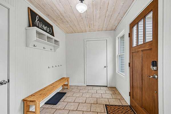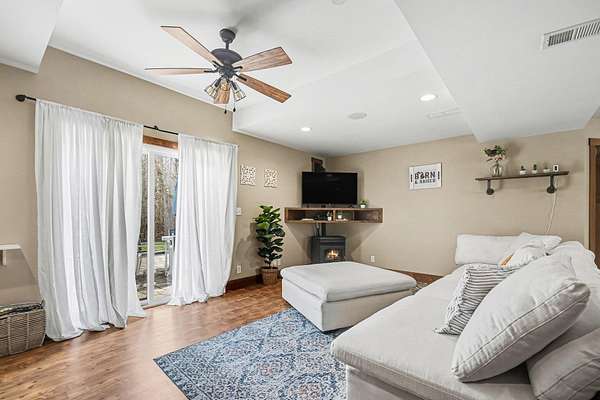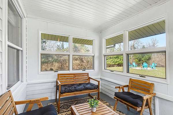 Welcome to your private woodland retreat just minutes from the beach - five serene acres tucked away on a quiet private road, moments from Downtown South Haven's cafes, boutiques, and coastal charm. This beautifully updated 5-bedroom, 2-bath home blends comfort, function, and natural beauty. The main level offers three bedrooms alongside a fully renovated bath, while the heart of the home unfolds in an open-concept kitchen featuring a brand-new dishwasher and a central island with sink and seating - perfect for casual dining and gathering. Surrounded by large windows that fill the space with natural light and views of the surrounding woods, the kitchen flows seamlessly into the dining and living areas, designed for both everyday living and effortless entertaining. A light-filled three-season porch invites you to slow down and take in the peaceful wooded views year-round. The finished walkout lower level expands your living space with a cozy pellet stove, additional living area, mini fridge, and large sliding doors that open to a beautifully stone-paved patio - perfect for relaxing or entertaining. The lower level features two additional bedrooms and a second full bath, including a generously sized bedroom with an oversized walk-in closet, offering flexibility as a private primary suite or in-law retreat. The oversized attached 4-car garage is a standout feature, offering ample space for vehicles, storage, or recreational equipment, complete with its own pellet stove, full-size refrigerator, sink, and workspace - ideal for hobbyists or those needing extra flexibility. Recent updates include new kitchen appliances, heat pump and A/C, fresh interior paint, LED recessed lighting, updated fixtures, new flooring in multiple bedrooms, a renovated main-floor bathroom, and new water systems installed in 2025. Whether you're searching for a full-time residence, a weekend escape, or a high-potential rental property, this home offers the perfect blend of privacy, proximity, and possibility. A rare opportunity to own a peaceful slice of Michigan living.
