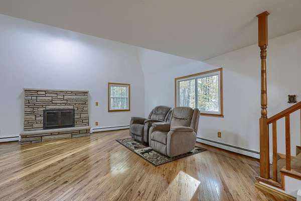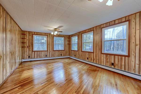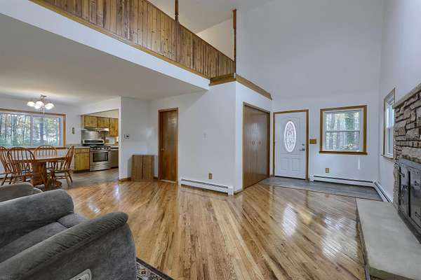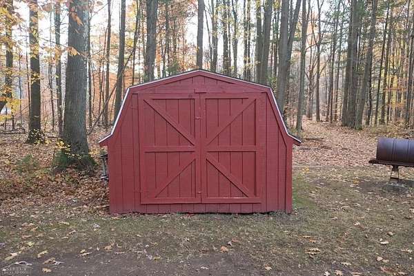 Welcome to 7241 Bryce where peace, privacy, and natural beauty meet! This one-of-a-kind home sits on gorgeous acreage surrounded by mature trees, colorful flowers, & abundant wildlife. Enjoy breathtaking views and peaceful walks along your private trails -- the perfect place to unwind and reconnect with nature. Step inside to discover a warm & inviting home that has been lovingly maintained. The spacious living room features a cozy fireplace and gleaming new wood floors, creating the perfect spot for relaxing or entertaining. The bright eat-in kitchen offers lovely views, and all appliances are included, Move right in and start enjoying! You will find two generous bedrooms with stunning views & recent updates throughout. The extra-large 2.5 car garage has an attached storage room & full electrical service (220 and 110), while a backyard shed provides even more storage space. Notable updates include: Roof and shingles with transferable warranty (2023), Living room wood flooring (2025), Upper-level flooring (2025), Interior paint (2023), Windows with 1-time transferable warranty (2019), Waterproofed basement (2019), Boiler (2009, maintained regularly), Well (2002) The dry, clean basement offers plenty of space for additional storage or future finishing possibilities. Whether you're looking for a peaceful year-round home or a serene weekend retreat, 7241 Bryce delivers the perfect blend of comfort, character, and natural beauty. Don't miss this rare opportunity to own your own private sanctuary! 3 parcels of land included in sale to equal approx acres. *Tax information above does not reflect the total for all parcels included in the sale.* All room sizes are approx, buyers agent to verify. Lot sizes are approx.