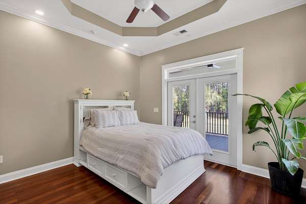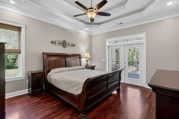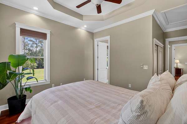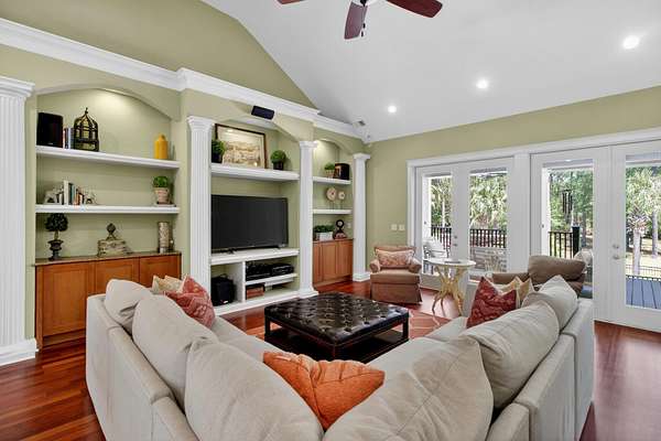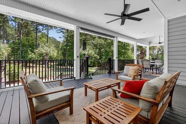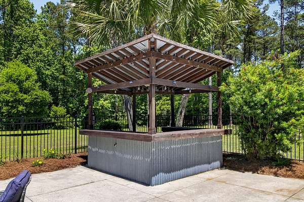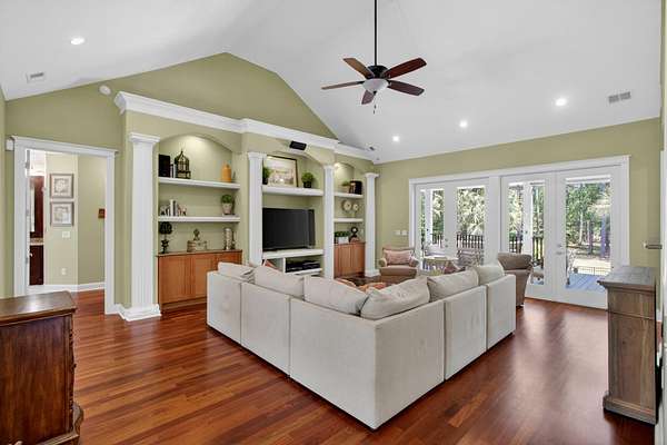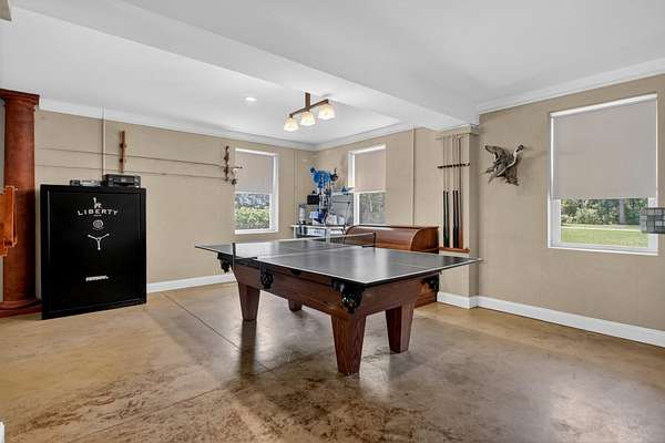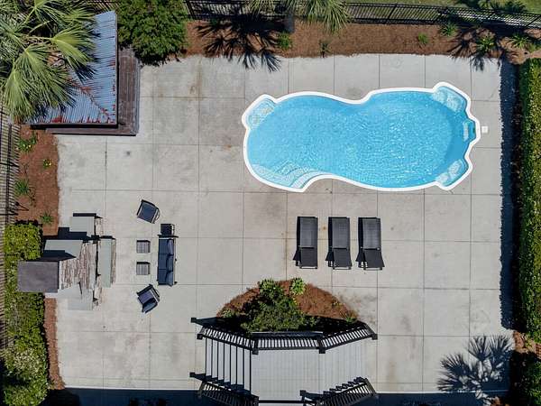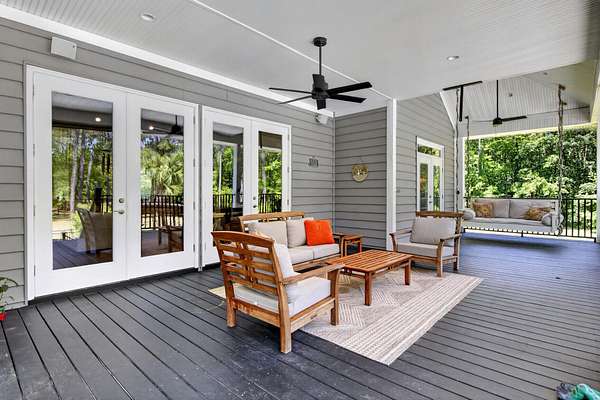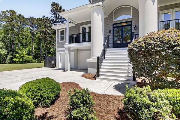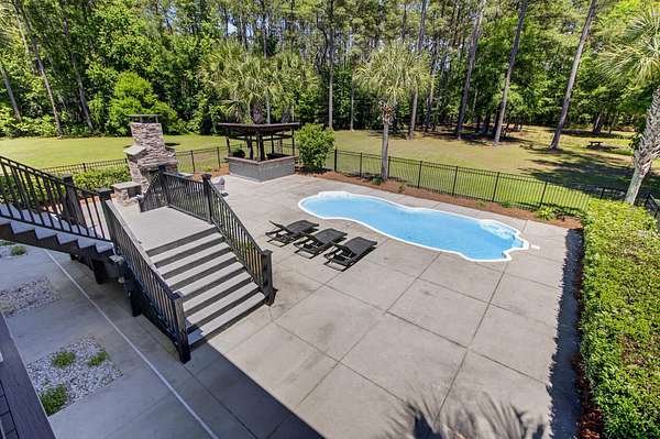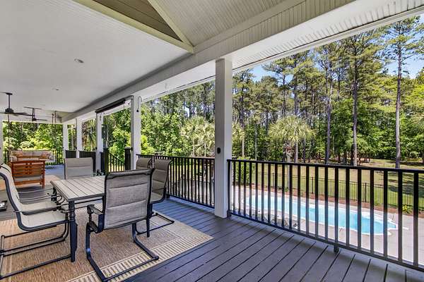Tucked away on 10 private acres, this custom-built executive home offers the rare combination of peaceful seclusion and everyday convenience--just a short drive to town while feeling worlds away. With over 7 acres cleared, the entire property fenced, and a private electric security gate at the entrance, this estate is designed for those who value space, privacy, and the freedom to truly enjoy both. A picturesque 1/2-acre pond with a dock adds to the setting, while the outdoor living spaces create a true resort-style experience. The inground pool area is the centerpiece of the backyard, complete with a tiki bar, covered outdoor shower, grill area, and a newly added outdoor fireplace--perfect for gathering year-round and extending evenings under the stars. Stretching the entire length of the back of the home, the expansive covered porch is one of the property's most impressive features. Double French doors from the living room create a seamless transition to this incredible outdoor living space, where peaceful views of the pool, pond, and surrounding acreage create the perfect private retreat. Designed for both relaxing and entertaining, the porch easily accommodates multiple seating and dining areas while allowing you to enjoy the beauty and privacy of the land from every angle. Inside, quality craftsmanship and thoughtful design are evident throughout. Brazilian cherry floors run across the main living areas, while soaring 17-foot ceilings in the great room create a dramatic yet inviting space. The open-concept layout connects the great room to the custom kitchen and formal dining room, creating a warm, functional space for everyday living and entertaining. The kitchen also features a spacious eat-in area, offering plenty of room for casual dining and giving flexibility for the formal dining room to easily serve as a home office, sitting room, or additional flex space if desired. The dining room features 8-foot French doors that open to the front porch, adding even more charm and natural light to the home. Designed with a desirable split floor plan, the primary suite offers both privacy and comfort. The spacious primary bedroom opens directly to the expansive back porch through French doors and features separate his-and-hers custom closets. The primary bath includes dual vanities, a large walk-in tiled shower, and a jetted jacuzzi tub for a true spa-like retreat. The two additional generously sized bedrooms are both ensuite, each with its own private bathroom and French doors leading to outdoor porch spaces--one opening to its own private front porch area and the other to the back porch--creating the perfect setup for family or guests. The lower level is currently designed as an impressive media and entertainment space, complete with a wet bar, a full bathroom, and a large gathering area centered on the built-in projection screen. This flexible space could easily serve as an in-law suite, with a hallway leading to additional garage space that could be framed for a fourth bedroom. The lower level also opens to a covered outdoor area currently used for grilling, offering the perfect opportunity for a secondary private patio space ideal for extended family or guests. Additional features include a drive-under garage with room for up to four cars parked tandem, a large detached shed with covered drive-under storage on the side of the property, two irrigation systems servicing the land, fiber optics run to the house, system in place to treat well water, wet bar features reverse osmosis, and thoughtful custom details throughout that make this home as functional as it is impressive. This is more than a home--it is a private retreat designed for entertaining, relaxing, and enjoying the best of Lowcountry living.