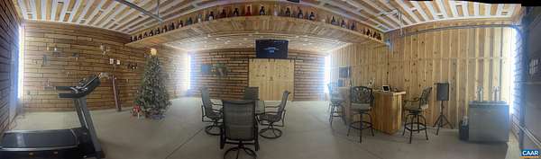 Unbelievable one-level home set on 4.6 tranquil acres featuring a DREAM 5-CAR GARAGE and exceptional indoor-outdoor living. Perfectly located just minutes from shopping and dining, this property offers both privacy and convenience. This thoughtfully designed 3-bedroom split floor plan boasts an open-concept layout with brand-new flooring throughout the main living areas, soaring ceilings, and a beautifully appointed kitchen with granite countertops. Step outside to a spacious covered concrete back deck, complete with lighting for evening gatherings, grilling, and year-round enjoyment. Already wired for a hot tub. Just beyond, you’ll find a newly created fire pit area—perfect for relaxing nights, s’mores, and entertaining guests. Car enthusiasts and entertainers alike will fall in love with the ultimate garage retreat. Through stunning barn doors, discover a fully finished, heated and cooled lounge featuring a custom bar and space for games like darts—an entertainer’s dream that’s sure to impress. The garage offers two interior parking bays plus additional space on the opposite side of the lounge, providing incredible flexibility. Established raised garden beds and a greenhouse for those with a green thumb. WH Generator also!