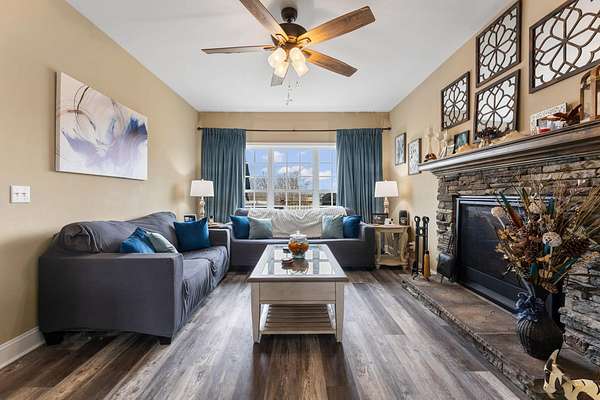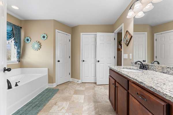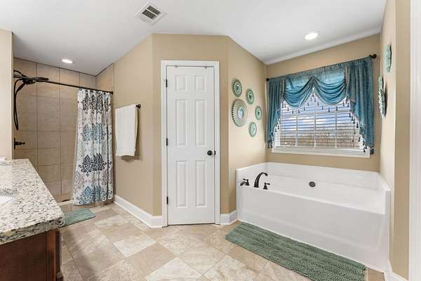 - 2 Story Foyer, Attic Stairs-Disappearing, Ceiling Fan, Countertops-Solid Surface, Fireplace, Garden Tub, Gas Logs, Sec. System-Owned/Conveys, Smoke Detector, Walk in Closet