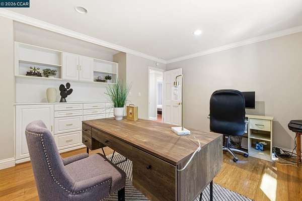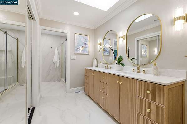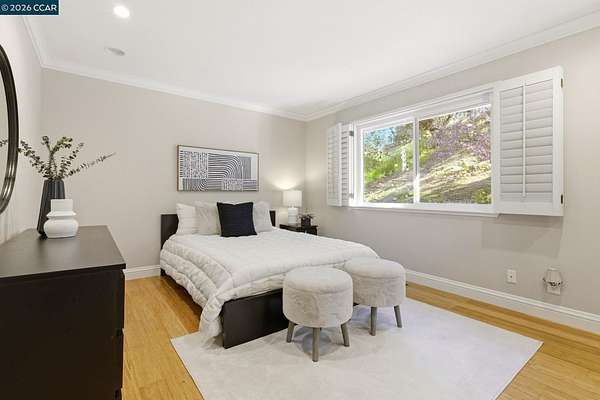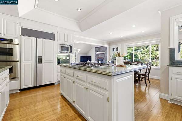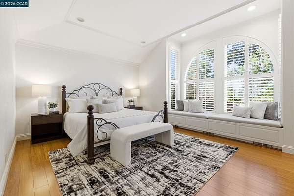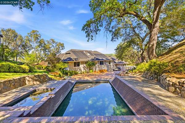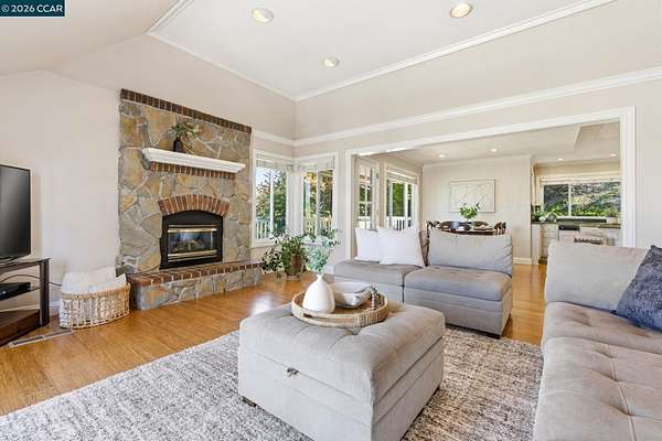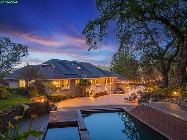 Expansive 5-bedroom custom Northgate home set on 1.81 acres with sweeping views from a private, elevated setting. Designed for single-level living, 4 bedrooms are on the main level, complemented by updated bathrooms & a 5th bedroom or bonus space with full bath downstairs. Large picture windows frame the views from the living room, creating a light-filled space with soaring ceilings, while the formal dining room connects through a butler's pantry to the kitchen. The kitchen serves as a central gathering space with updated appliances, breakfast nook & walk-in + butler's pantries, flowing into the family room, which offers a more relaxed setting. Hardwood floors, high ceilings & French doors contribute to the scale and natural light. The primary suite is privately positioned and features a fireplace, window seat, custom built-ins with concealed media storage, dual closets & a remodeled bath with an expansive vanity, freestanding tub & walk-in shower. Outdoor living is arranged across multiple distinct spaces, including a pool & spa set in a more private setting, expansive decking with seating and a fire pit, and a gazebo positioned to take in the surrounding views. Located near top-rated Northgate area schools, Boundary Oak Golf Course, Mt. Diablo trails, parks & shopping.