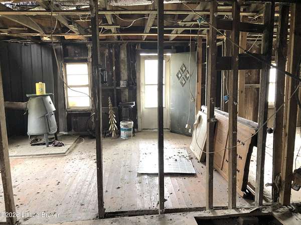 Est $702/moHome has had fire damage and has no electric, permit has been purchased and will soon have electric. The home does not have all the wiring due to the fire. The frame is in fair condition with some windows burned out and the water heater is gone. It was a two bedroom home with one bath. The hvac is still intact along with the vents. The outbuildings are all ok, no damage. Nice front porch to sit and relax and watch the pets or children play. Enter at your own risk. There is an adverse possession claim on the southeast corner of the property and the seller will deal with the court.