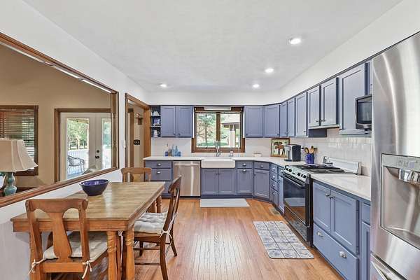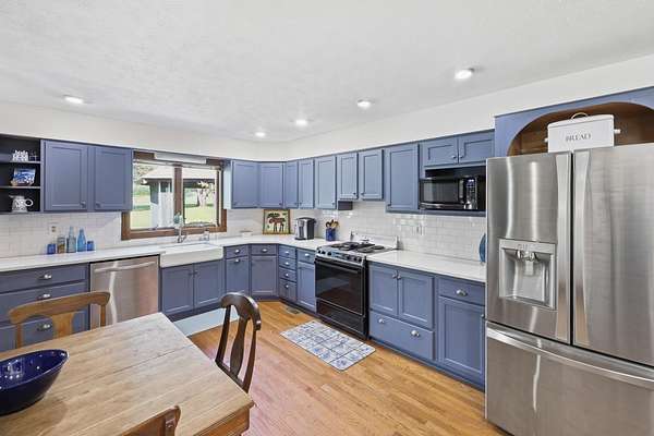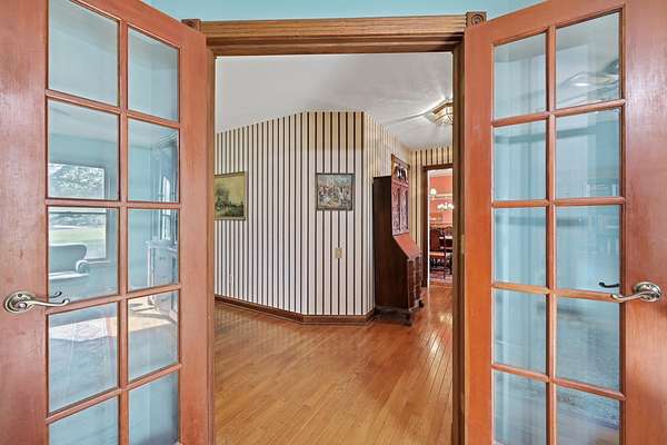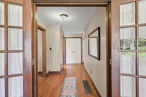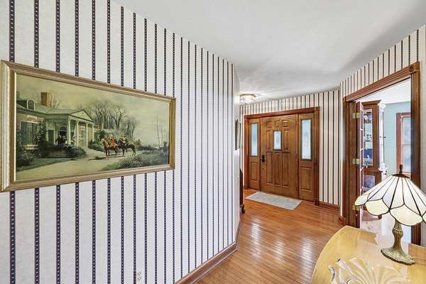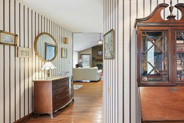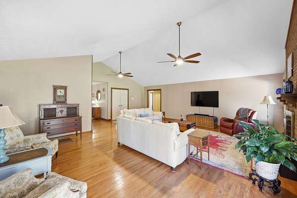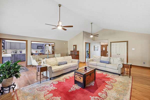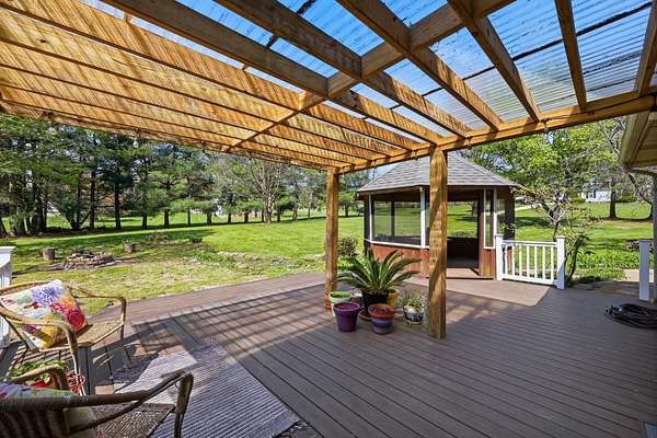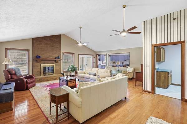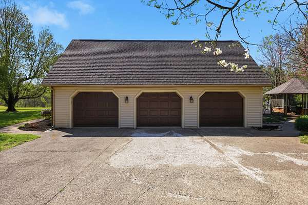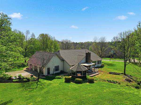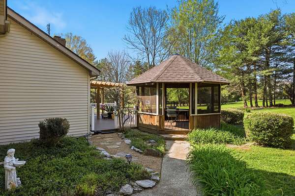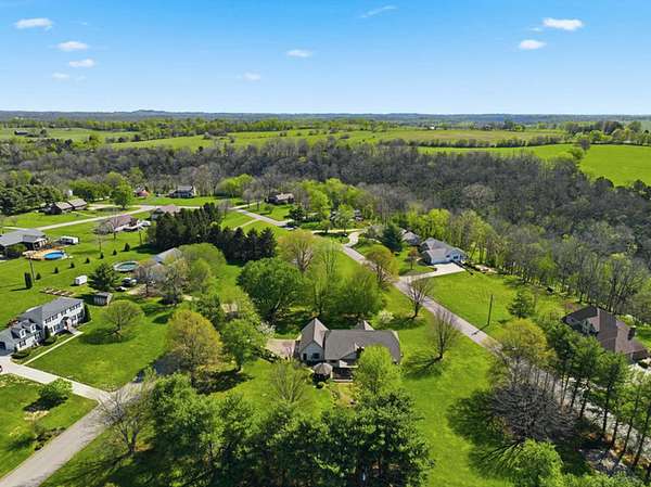 This 2.2 Acre Restful Retreat Is Located In The Established Riverview Estates Neighborhood. The charming four bedroom, two and a half bath home is nestled on a picturesque, corner lot, framed by mature trees. The aggregate sidewalk leads you along a landscaped area brimming with colorful annuals and dogwood trees to a welcoming front porch with a new railing. When you step inside, you will notice lots of character with rich wood trim, an airy interior with large windows, and mostly hardwood flooring throughout the home. The inviting great room features a soaring vaulted ceiling and a cozy wood-burning fireplace, offering a comfortable space for family and friends to gather. The kitchen opens to the great room, creating an easy entertaining arrangement. The refreshed kitchen features quartz counters, a stylish tiled backsplash, appliances, a stainless-steel refrigerator and dishwasher. A built-in desk adds character and organizational space. The huge walk-in pantry allows for effortless organization. The sun-filled dining room features an oversized window that frames your view of your private setting. The dedicated office is ideal for those who work from home; this is a standout feature. The elegant French doors and natural light create a nice environment for focus. The bedroom wing offers everyone privacy. The sunny, spacious primary suite features a dramatic vaulted ceiling and has a walk-in closet. The ensuite bath offers plenty of space with a double sink vanity, soaking tub, a step-in shower, and it offers sunlight with a bay window. The additional 3 bedrooms are good-sized with generous closet space. These rooms share an updated bath with a granite double sink vanity, tub-shower, and a large linen closet. The home's thoughtful design includes a half bath, a large hall closet, a game closet in the great room, and a large laundry room. Envision the enjoyment, the great room opens onto the low-maintenance Trex deck. Partially covered with a pergola, this private outdoor living area is enhanced with a gazebo, perfect for your morning coffee. A playhouse, a basketball goal with a pad, and a fire pit for roasting marshmallows offer endless enjoyment in the months ahead. Peace of mind comes with a new roof and a 3-car garage that provides ample room for vehicles, a workshop, and storage. This one-level living home is ideally located near the scenic 2168 connector road and would be ideal for Lexington commuters. Historic downtown is only minutes away for shopping, dining, church, schools, Ky School for the Deaf, Centre College, Norton Center for the Arts, and Ephriam McDowell Regional Medical Center. This is a lovely home and a beautiful setting that you need to experience!
