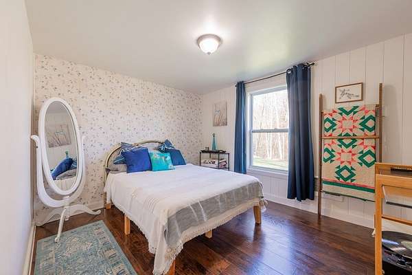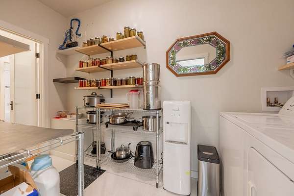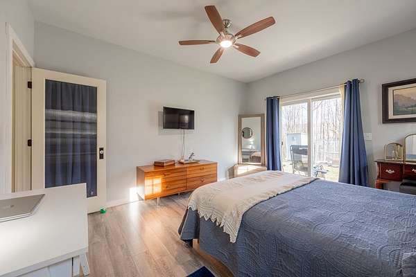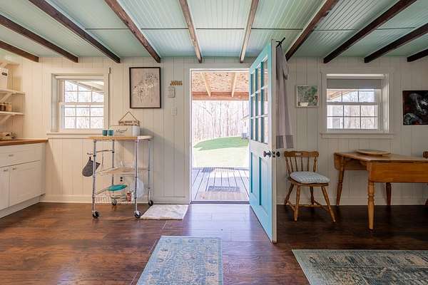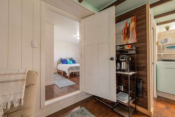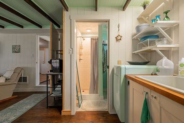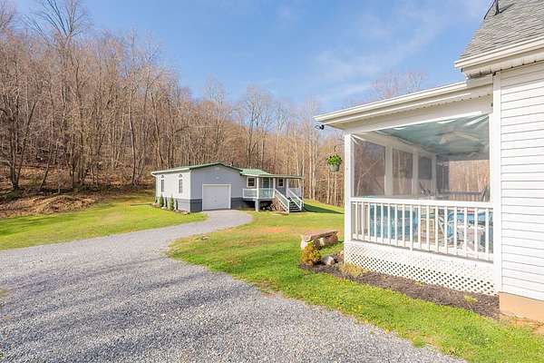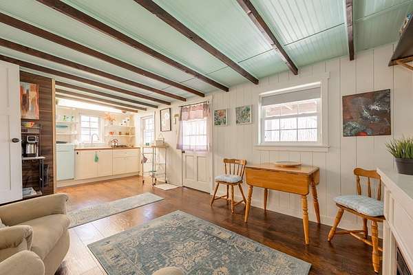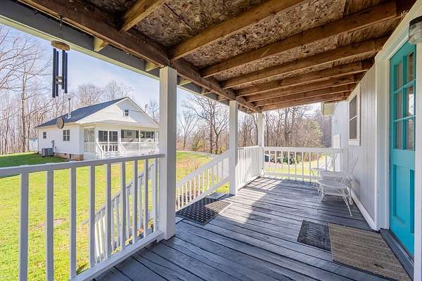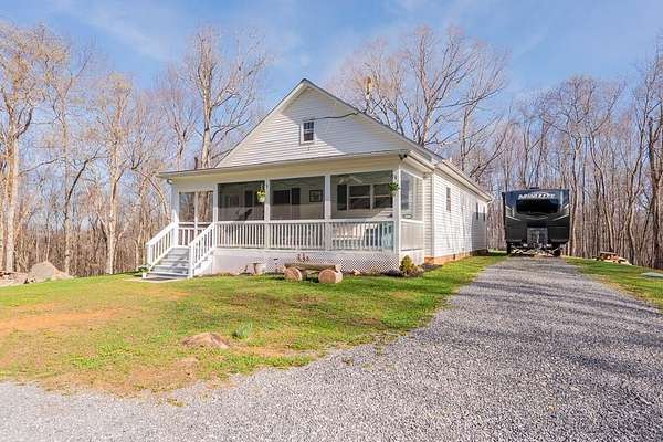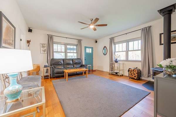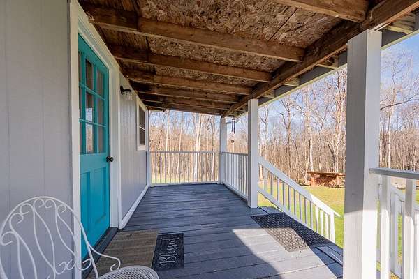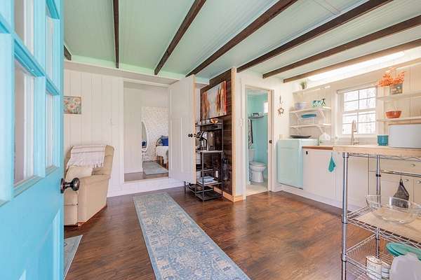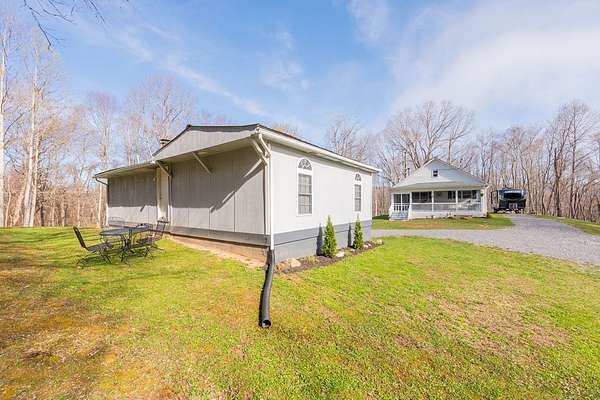 Tucked away on 4.35 private acres just 4 miles from town, this charming 2-bedroom, 1-bath home (built in 2016) is the perfect mini homestead with an additional 1-bedroom, 1-bath ADU provides space for guests or rental income. Thoughtfully designed with attention to detail, the main dwelling features 9' ceilings, laminate wood and hardwood flooring, custom shades, soft-close drawers, and a stylish butler's pantry. The kitchen shines with retro-inspired appliances, including a Big Chill refrigerator and Northstar range. Enjoy year-round comfort with a heat pump and ceiling fans in every room. Relax on the spacious 28'x8' covered front porch with ceiling fans, or take in peaceful sunrises and sunsets surrounded by nature and wildlife. The home also offers a large attic for storage, 4G internet, and a security system. Outside, you'll find an RV pad, fenced garden with raised beds, and beautiful natural landscaping and a18x8 shed w/electric. Private, serene, and shown by appointment only.