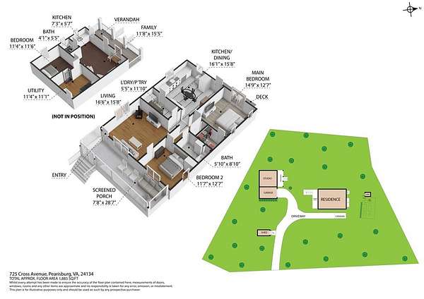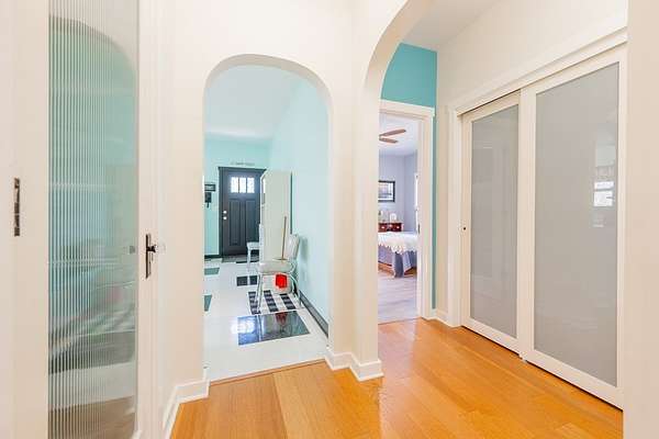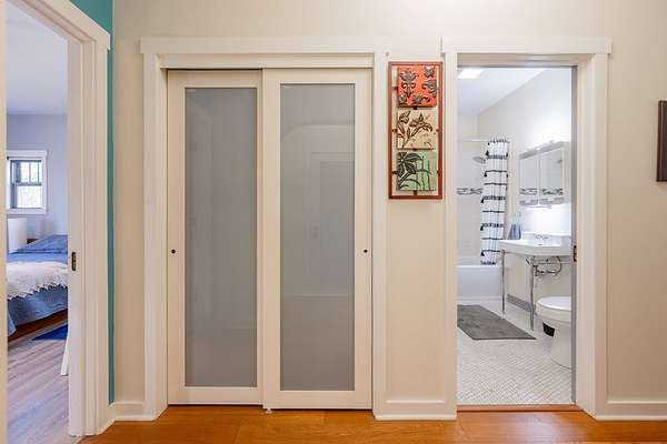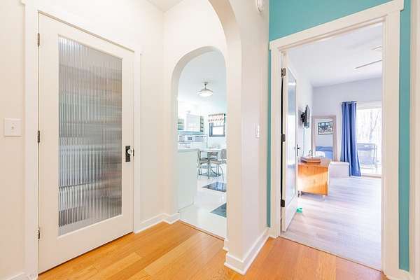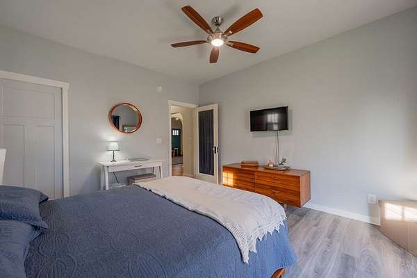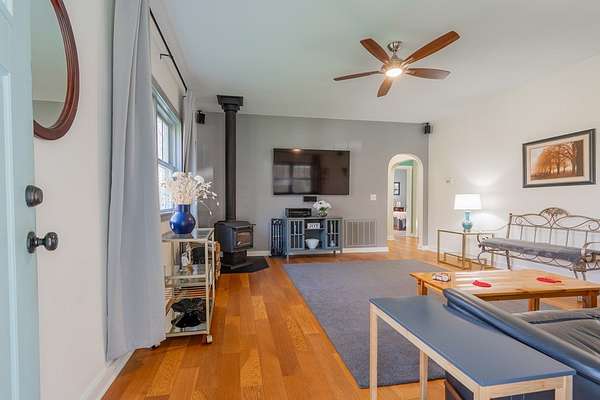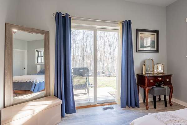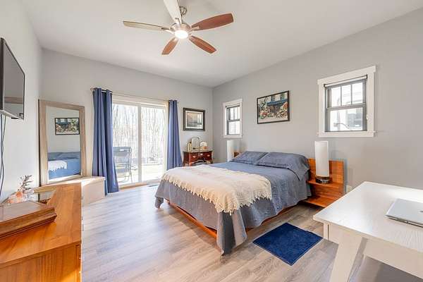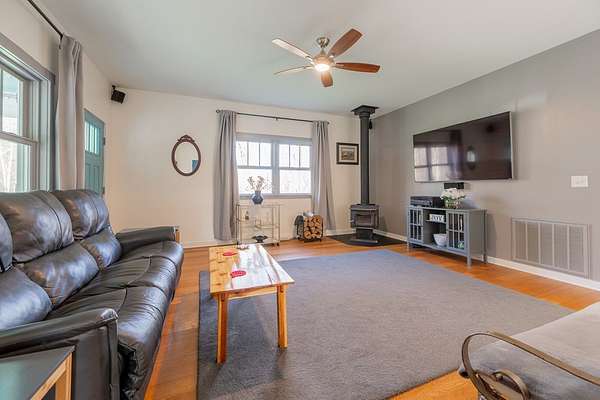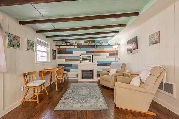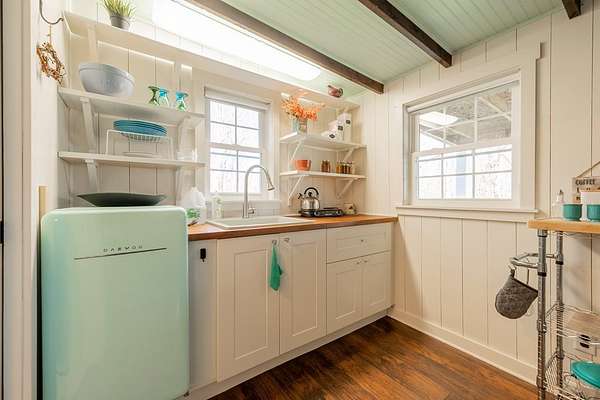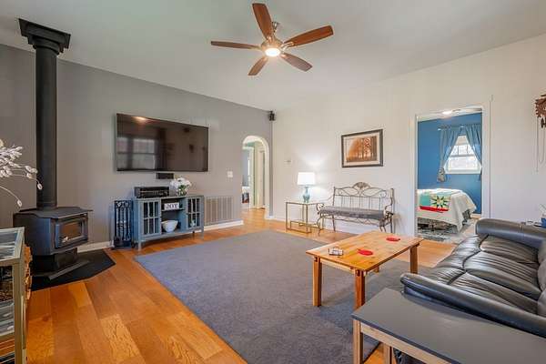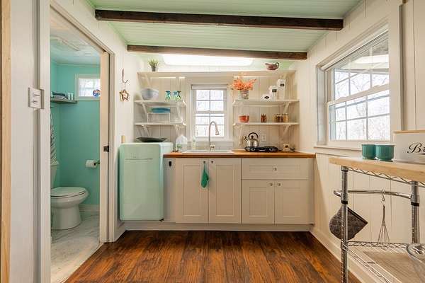 Tucked away on 4.35 private acres just 4 miles from town, this charming 2-bedroom, 1-bath home (built in 2016) is the perfect mini homestead with an additional 1-bedroom, 1-bath ADU provides space for guests or rental income. Thoughtfully designed with attention to detail, the main dwelling features 9' ceilings, laminate wood and hardwood flooring, custom shades, soft-close drawers, and a stylish butler's pantry. The kitchen shines with retro-inspired appliances, including a Big Chill refrigerator and Northstar range. Enjoy year-round comfort with a heat pump and ceiling fans in every room. Relax on the spacious 28'x8' covered front porch with ceiling fans, or take in peaceful sunrises and sunsets surrounded by nature and wildlife. The home also offers a large attic for storage, 4G internet, and a security system. Outside, you'll find an RV pad, fenced garden with raised beds, and beautiful natural landscaping and a18x8 shed w/electric. Private, serene, and shown by appointment only.