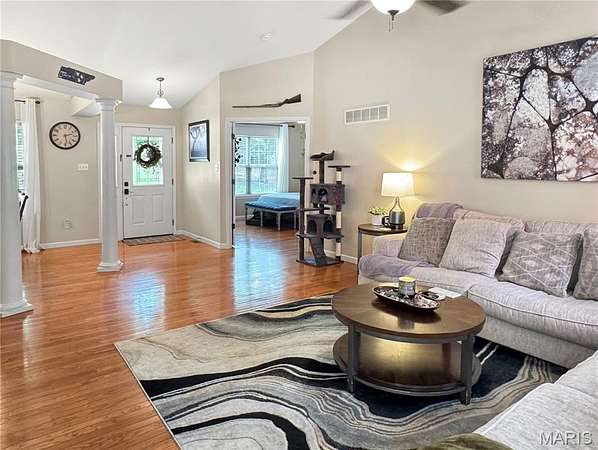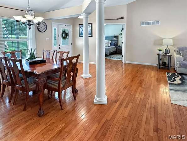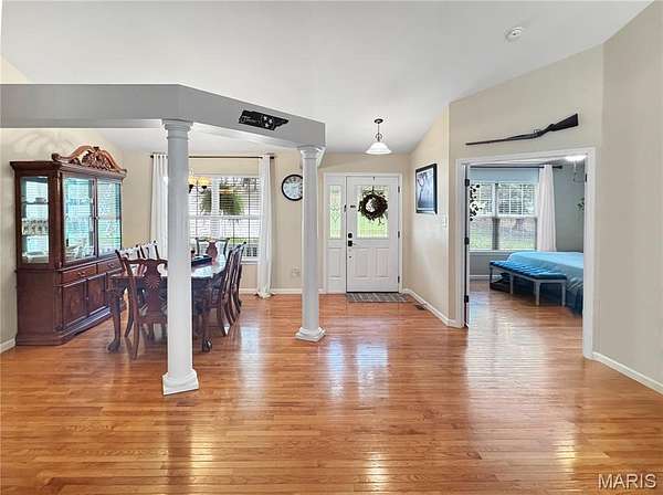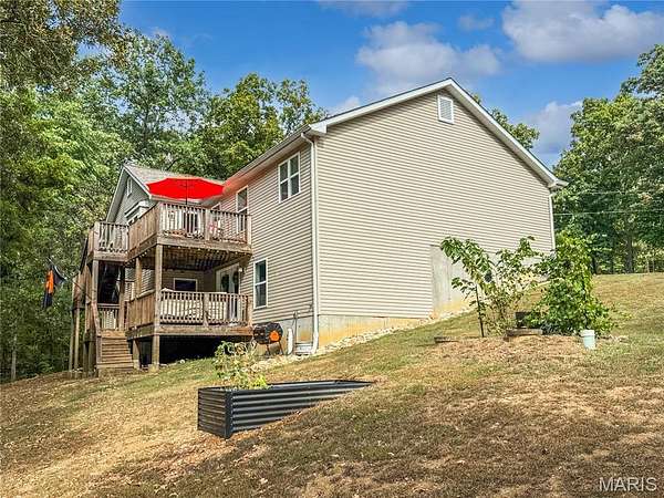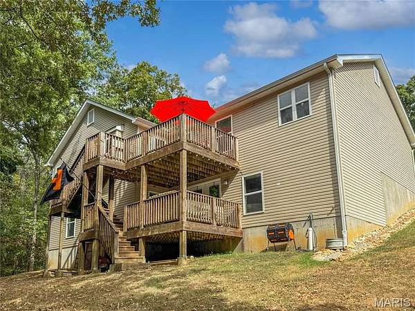 Perfect Place For Your Own Private Slice of Paradise! On 3+ acres, this fully updated Ranch Home features a private pond, multiple outdoor living spaces, finished lower level, and convenient location near Union MO. Renovated from Top to Bottom, the finishes in this home could make the cover of a magazine and ensure this is as MOVE -IN READY as new construction! The entry leads you into the open but distinct Dining and Living Rooms, which connect to the charming Kitchen with eat-in island, coffee nook, and access to upper deck with Pond view. This home has a divided bedroom floor plan. The primary bedroom suite features a large walk-in closet, separate tub and shower, large vanity, and french doors, while the 2 main level bedrooms can be found on the other side of the home with hall bath, laundry, and access to garage. Lower Level is exquisitely finished with every amentiy you have in mind. After walking down the stairs, you find that the Bar Area, Game Area, & Family Room are all open, and lead to the lower deck access. Off the open area, you find a hallway to Gym, 4th Bedroom, storage, and Full Bathroom. Additional Parking along garage. Backs to Woods with private view of pond. A Country Setting Convenient to Town. Don't Hesitate-Come See!