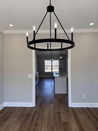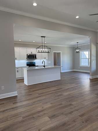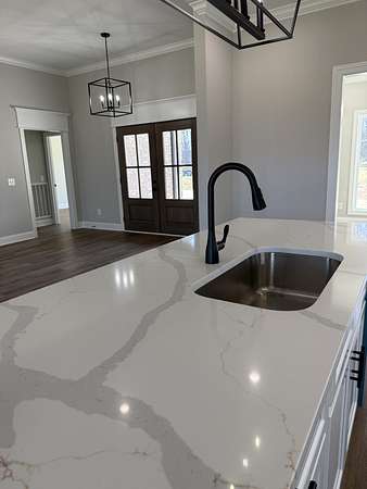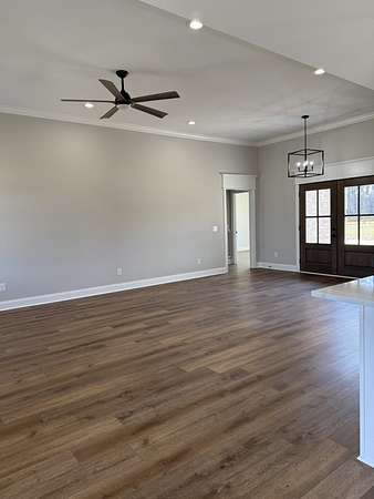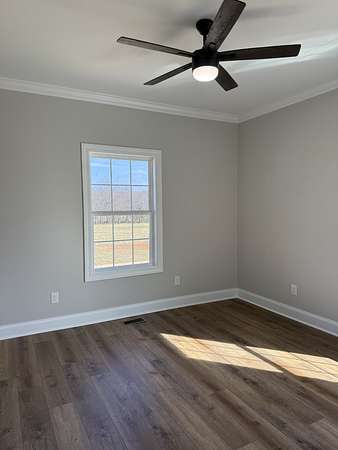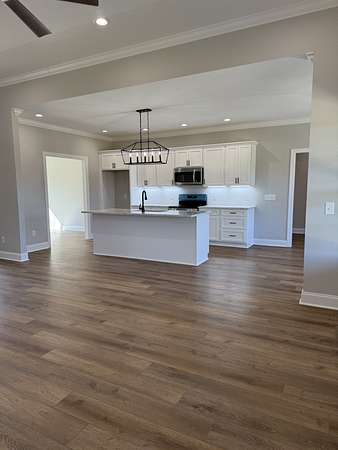 Beautiful New 3 bedroom, 2 bathroom home on 5+ acres!! This property has so much to offer with its lovely open floor plan, separate dining room, spacious primary bedroom with an en-suite bathroom featuring a tile shower, and extra large closet. The impressive upgrades include quartz countertops in kitchen and bathrooms, heavy trim and molding, soft close cabinets, stainless steel appliances, custom light fixtures, under cabinet lighting in kitchen, and stair tread lights. The flooring is high quality luxury vinyl plank, with tile in the wet areas, carpet in the bonus room, and hardwood steps. The outside is just as stunning with a covered front porch, and large covered back porch where you can enjoy your privacy and the beautiful country view. This home has it all and is move in ready!