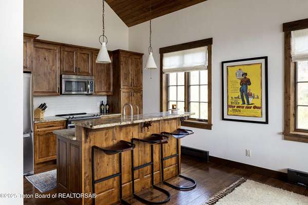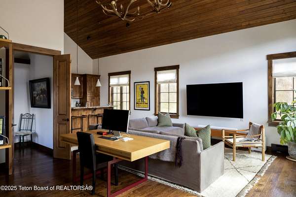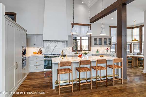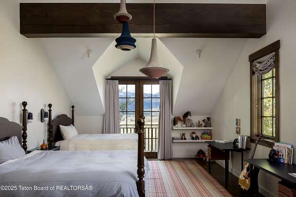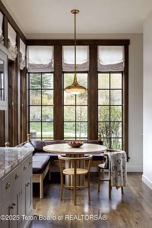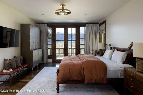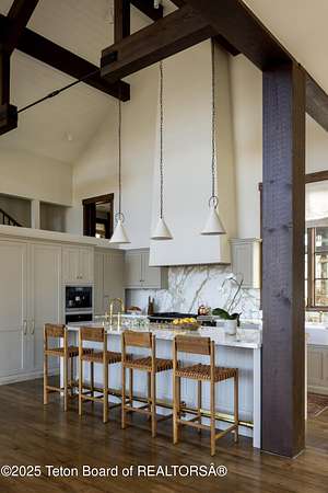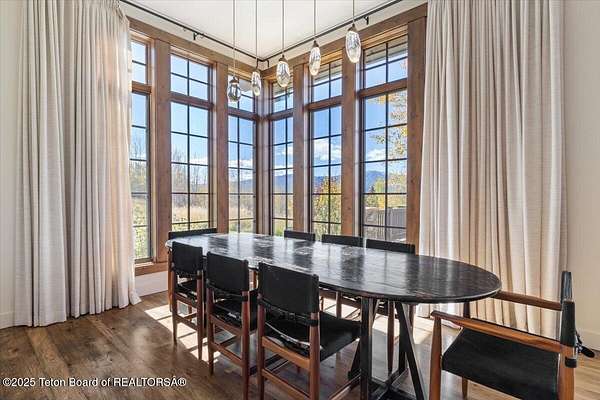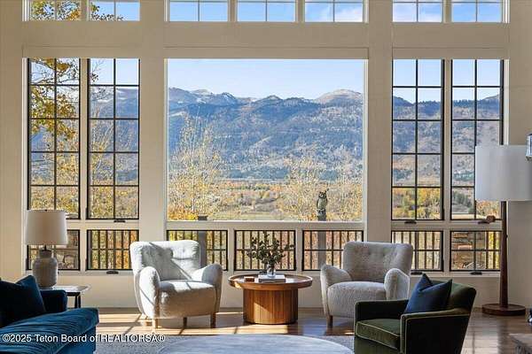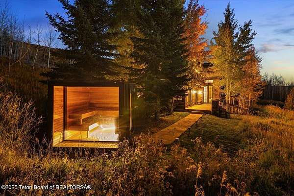 Est $67,105/moSet on 2.81 acres with a peaceful, elevated setting, this luxury mountain home offers over 4,400 sq ft of refined living space with breathtaking Teton views. Fully renovated in 2022, the residence features four bedrooms, four baths, and an open, elegant design ideal for year-round living. The primary suite opens to a private deck, and each upstairs guest room has its own deck and French doors. Outside, enjoy a spacious entertaining deck and a custom outdoor sauna built for winter relaxation. The separate guest house, built in 2015 above a two-car garage, includes a full kitchen, bedroom, and a newly remodeled bath, plus its own private deck with views.
