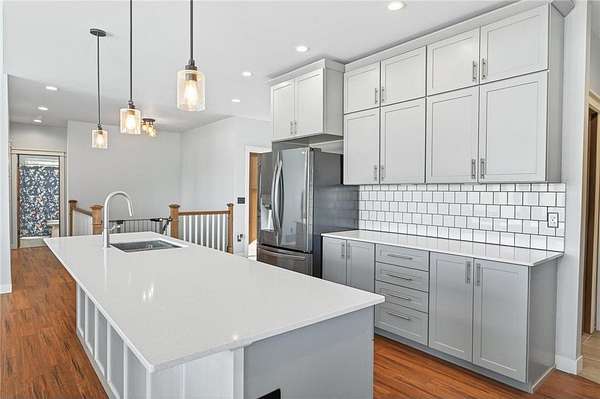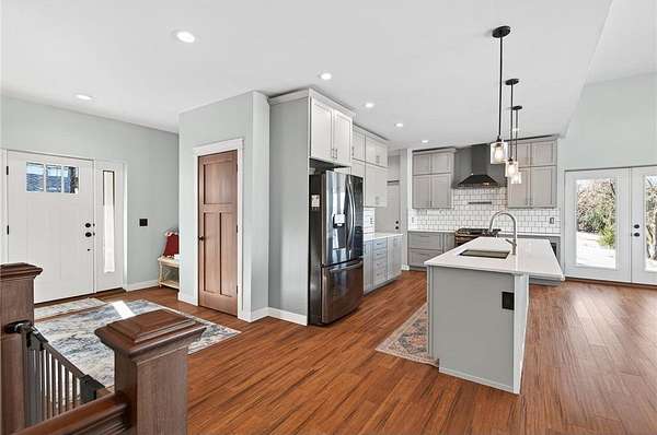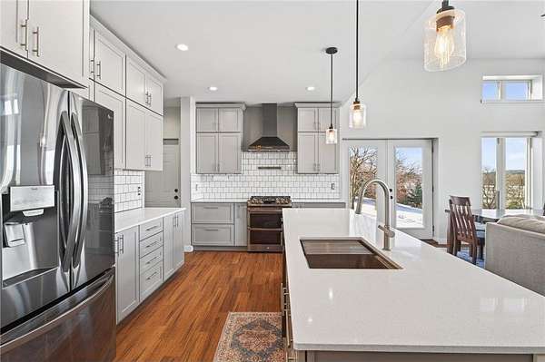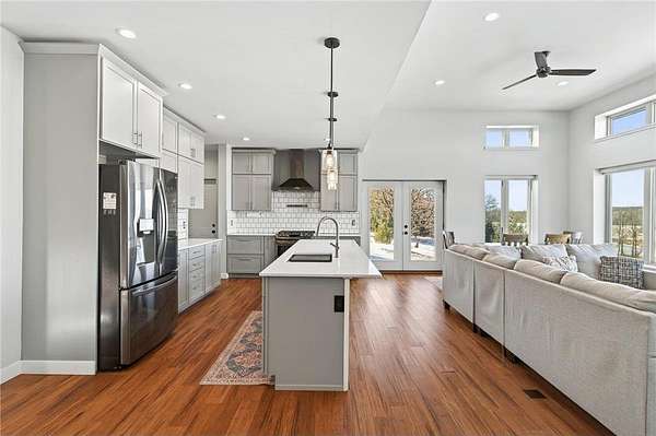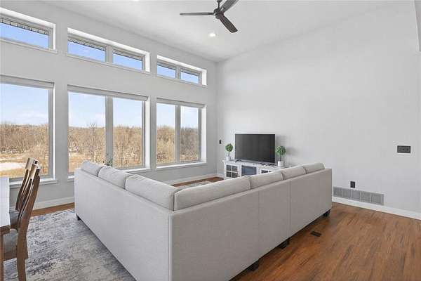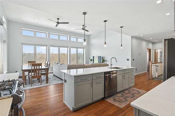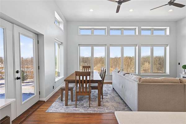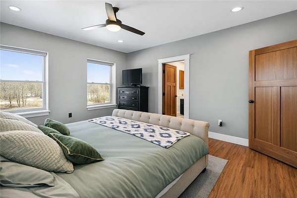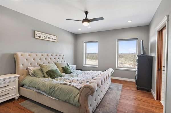 This 4-bedroom, 4-bathroom home sits on 2.2 acres with views of the Minnesota River Valley. The open-concept main level features a 9.5-foot kitchen island overlooking the dining and living areas. Bamboo flooring extends throughout the main level, and bathrooms are fully tiled.