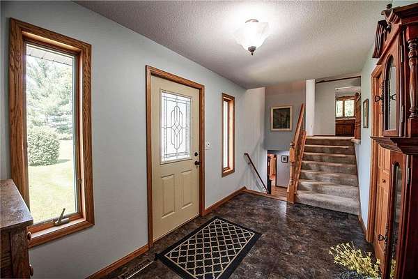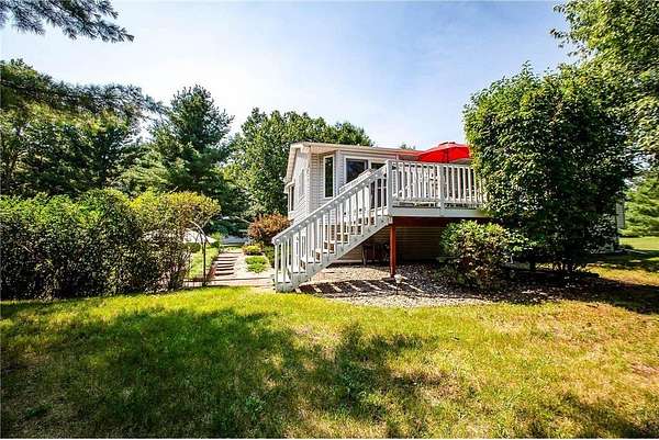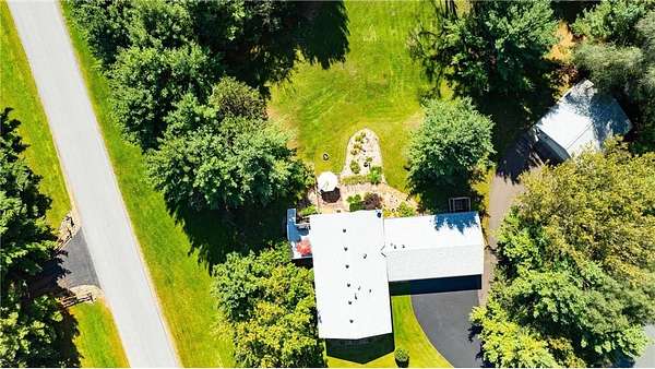Welcome to this beautifully updated 4-bedroom, 3-bathroom home nestled on 2.18 private acres - perfect for hosting unforgettable gatherings inside and out. The spacious upper level features an open-concept kitchen and dining area, ideal for big family dinners and celebrations. The kitchen offers abundant counter space, ample cabinetry, updated lighting, a stylish peninsula, and stainless-steel appliances. Just off the dining area, step out onto a massive deck that overlooks the expansive backyard - perfect for grilling, relaxing, or enjoying nature. The upper level also includes a large, sun-filled living room, three generous bedrooms, a full hall bath, and a primary en suite with a 3/4 bath. The walkout lower level is built for entertaining with a wood burning stove and a second full kitchen - complete with wood cabinetry, a full-size fridge, stove, and microwave-plus a spacious open-concept dining and living area that's great for watching the big game or hosting large groups. It could also serve as a wonderful parent suite. Step outside of the lower level to a serene paver patio surrounded by mature trees and wildlife; your own private retreat. A brand-new asphalt driveway leads to an oversized 3-car attached garage plus a detached 2.5-car garage that features its own outdoor entertainment area. Recent Updates include a new roof, hot water heater, furnace, and central HVAC system that all replaced in 2023. This home has its all-space, privacy, and room to entertain indoors and out!