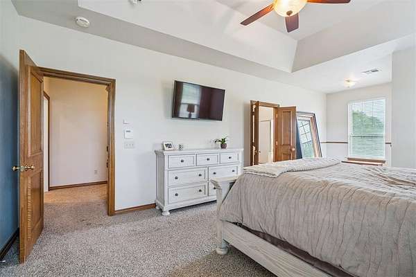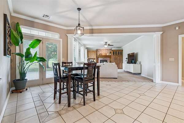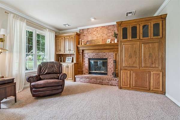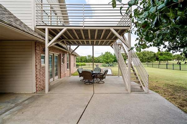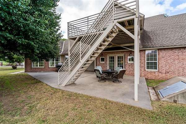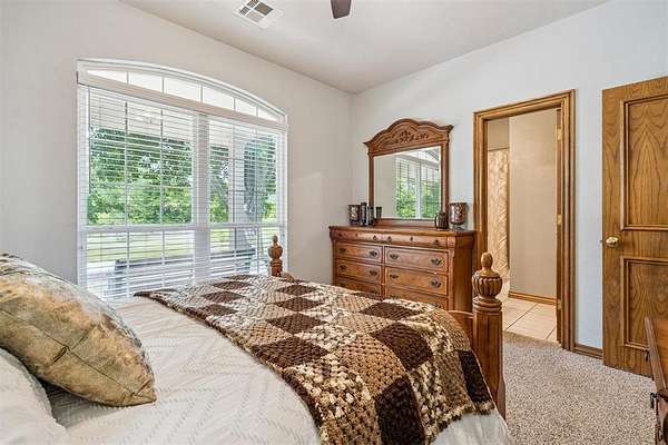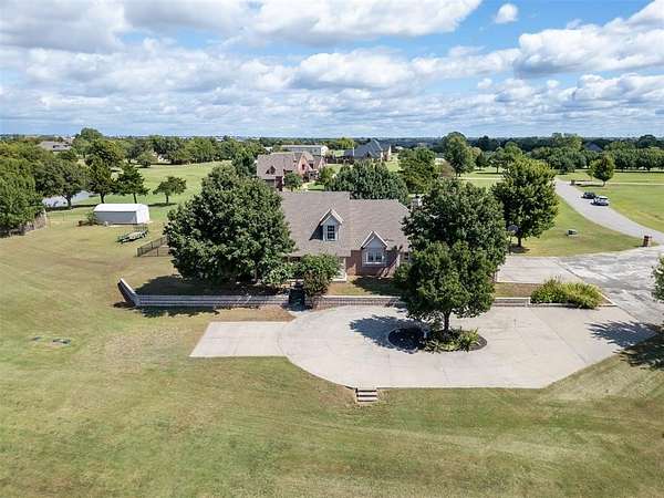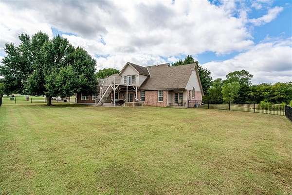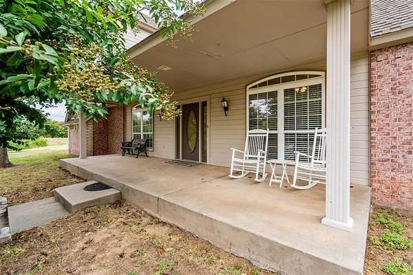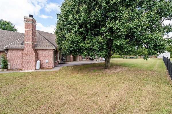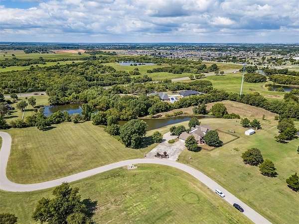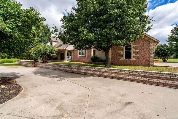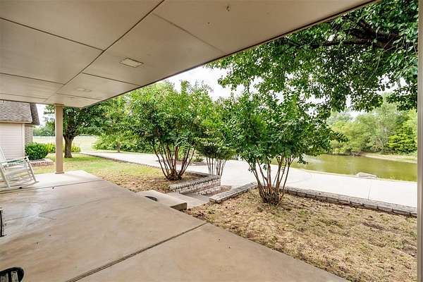 Experience the best of both worlds - peaceful country living right in the city! This beautiful home sits on over 6.5 acres of picturesque land complete with mature trees, open pastures, and your very own private stocked pond. Whether you're sipping coffee on the covered patio, watching wildlife by the water, or enjoying sunsets that paint the sky, this property offers a rare blend of tranquility and convenience. Inside, you'll find spacious, light-filled rooms that invite you to slow down and stay awhile. The large living area features expansive windows overlooking the property and a cozy brick fireplace that anchors the space with warmth and charm. The open dining and kitchen area makes entertaining easy, while the primary suite provides a serene retreat with access to the patio and views of the land. Highly efficient geo-thermal heat & air system and private water well. NEW ROOF to be installed before closing! Outside, there's plenty of room for hobbies, gatherings, or even future projects - including a storage building, underground storm shelter, fenced yard, and circular drive for easy access. Zoned rural, horses are allowed. New aerobic septic system & RainSoft water softener installed in 2020. Located within city limits, this home offers the privacy of rural living with quick access to shopping, and major highways. If you've been searching for a property that combines nature, space, and convenience - this is it.