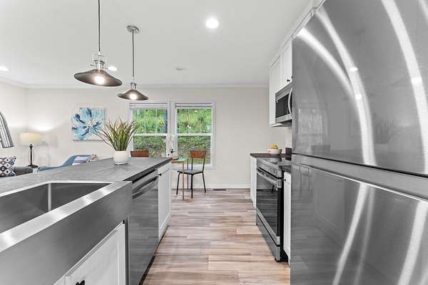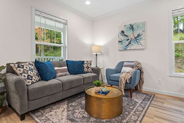 This charming single-level home offers easy, low-maintenance living in a peaceful mountain setting near pristine Lake Glenville-the highest elevation lake east of the Mississippi, renowned for its crystal-clear waters, boating, fishing, and stunning Blue Ridge Mountain scenery. Featuring 1 bedroom and 2 full baths, the home provides comfortable space for relaxing or hosting guests. Modern upgrades include durable luxury vinyl plank (LVP) flooring throughout, Samsung appliances and sleek white cabinetry in the kitchen, creating a bright, clean, and contemporary feel. A standout bonus office adds versatile space-perfect for remote work, hobbies, or a cozy reading nook. Step outside to the covered deck, where you'll enjoy breathtaking panoramic mountain views that change with the seasons-ideal for morning coffee, evening sunsets, or simply soaking in the fresh mountain air. Located just minutes from Lake Glenville's recreational opportunities (swimming, paddleboarding, waterfalls, and more), this property combines convenience with natural beauty. Plus, community roads are scheduled to be paved this spring, enhancing accessibility and value. Affordable mountain living at its best-don't miss this gem! Contact me today for a private showing.