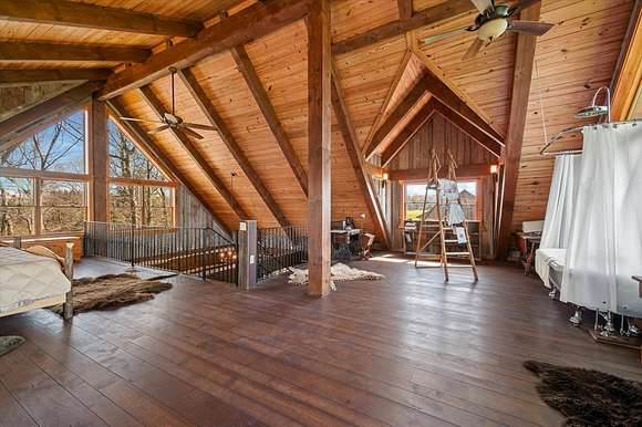 You Found "Home" combining The Outdoors, Riverfront & Luxury Log Cabin! The Outdoors:12.7 acres overlooking the Clarion River. Deer, Turkey & Bear call this home. Riverfront:1100 ft, of Clarion River borders the property and the 96 Ft Wrap-Around Deck displays it. Luxury Log Cabin: Custom Appalachian Dovetail Logs W/15 inch thick Sawn Log Exterior sets a tone for relaxing on the 36 ft Covered Front Porch & Secluded Rear Patio Over-Looking The River. Inside, the Open Concept Log Interior W/Aged Barn Wood Trim showcases the Great Room, Main Floor Bedroom, Kitchen W/Soapstone Counters & Dining Area. Enhancements include Cathedral Beam & Knotty Pine Ceiling, Hickory Hardwood Floors, Fully Finished Lower Level and Exquisite Master Suite Loft. They all combine for the Truly Luxurious Log Home Atmosphere. The 4-Car, 2-Floor Garage is complete with Kubota Tractor/Mower & Honda Side-By-Side with an Acceptable Offer. Today can be the first day of your Log Home Future!