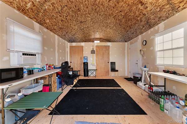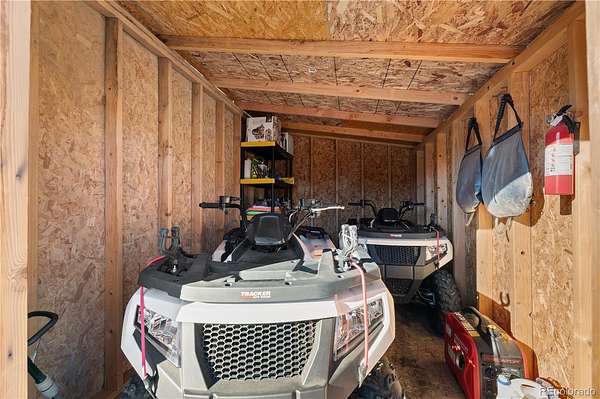 Several improvements support recreational use, camping, and future planning. A 16’ x 20’ insulated and drywalled shed serves as a comfortable base for weekend stays, with a foot pump sink in the main room and a sink and composting toilet in the bathroom. A 1400-gallon cistern is included for water storage. The property also has two additional storage sheds, shelving, and a windbreak/overhang for equipment protection.