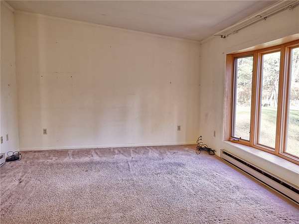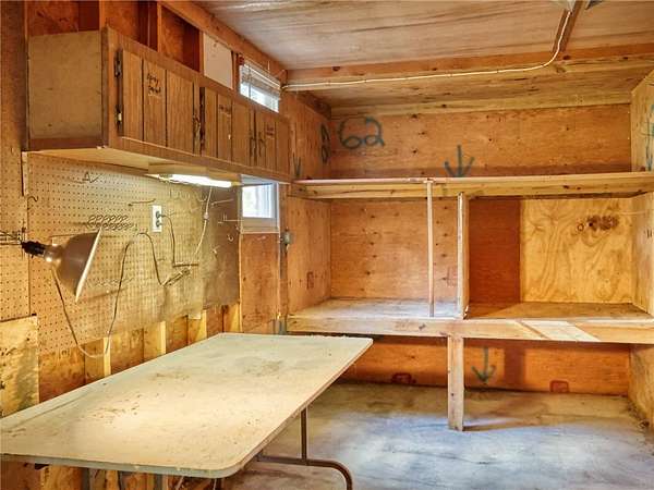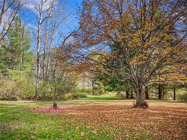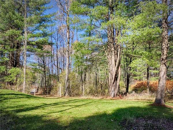 Set back from the road on 15.6 serene acres, this 2 bedroom 2 full bath home is all about privacy. The park-like setting includes a walking trail surrounded by mature woods including a shagbark hickory grove and a large yard for games and gardening. While the wooded paradise provides plenty for hunters to explore, the tinkerers will appreciate the generous 3-bay garage with high ceilings, storage space, and a workshop. The home has 2 decks, one in the front and the other in the back, to enjoy outdoor living. Not only does the living room feature a bay window, every window in every room in this house has a great view. The property has 2 additional sheds. Recent infrastructure updates include a new water heater and a pressure tank in 2023, and a new septic in 2024. This is such a beautiful spot to enjoy life for such an affordable price, leaving room in your budget to customize the home to your liking. Come see it!