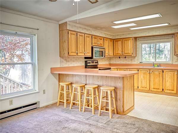 - Bath In Primary Bedroom, Bedroom On Main Level, Breakfast Bar, Ceiling Fans, Eat In Kitchen, Entrance Foyer, Main Level Primary, Primary Suite, Separate Formal Dining Room, Skylights