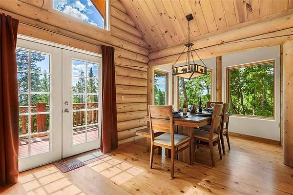 If you've been craving a mountain escape, this log cabin could be just what you're looking for. Set on 5.76 private acres in the Valley of the Sun neighborhood, it offers 2,715 sq. feet of living space that truly feels tucked away in the woods. The cabin has three levels, giving you plenty of room to spread out. The main floor features a spacious great room with vaulted ceilings, perfect for large gatherings. There's also a large bonus room that you can use however you like, a game room, home office, or extra sleeping space. With 4 bedrooms and 3 bathrooms, there's room for everyone to be comfortable. And when the mountain air turns crisp, you've got both a wood-burning stove and a gas stove to keep things warm and cozy. Step outside and you'll find yourself surrounded by tall trees that offer privacy and a true mountain vibe. The southeast-facing front deck is great for morning coffee or just soaking in the sun. There's also an outdoor fire pit that's ideal for evenings spent stargazing and telling stories. A large detached 3-car garage provides plenty of storage for all your mountain gear, whether it's bikes, ATVs, or snowmobiles. You're only about 40 minutes from the skiing and amenities of Breckenridge. Plus, you'll have easy access to fishing, hiking, mountain biking, and the recreation path running between Alma and Fairplay. The home has a durable metal roof and all the rustic character you'd expect in a mountain cabin. Home is fully furnished and turnkey, it's ready for you to start making memories. Come take a look!