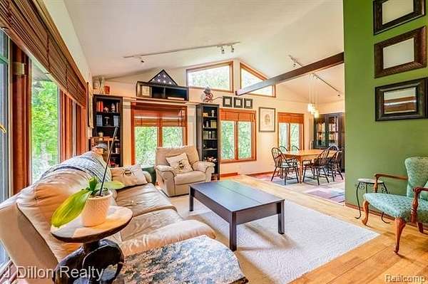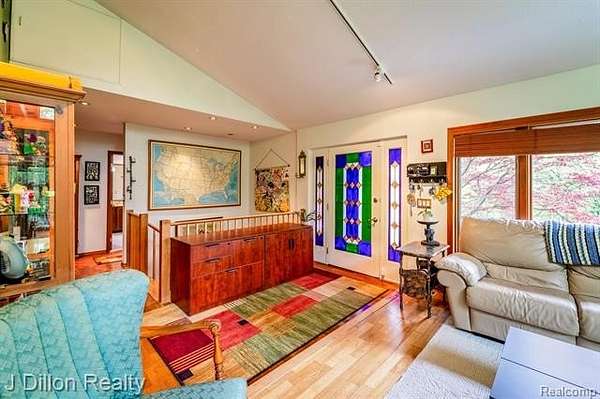Wow--this hard-to-find Saline ranch sits on 2.5 acres of wooded seclusion, offering the perfect balance of peace, privacy, and proximity to everything. Tucked away in a tranquil natural setting yet just minutes from downtown Saline, Ann Arbor, and major expressways, this raised ranch home provides the best of both worlds--country serenity with city convenience. Step inside to find gleaming natural hardwood floors flowing through the foyer, kitchen, dining, living room, and hallway. The open layout features vaulted ceilings and large windows that fill the home with natural light and stunning views of the surrounding landscape. The spacious 19x12 primary bedroom offers dual closets, a TV nook, and access to a private, screened "treehouse" balcony--an idyllic spot for your morning coffee or evening unwind.