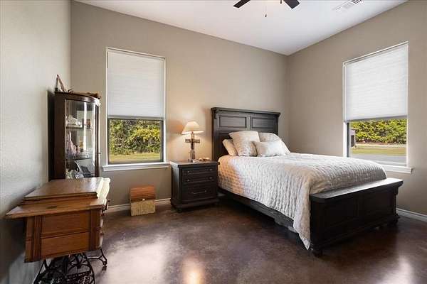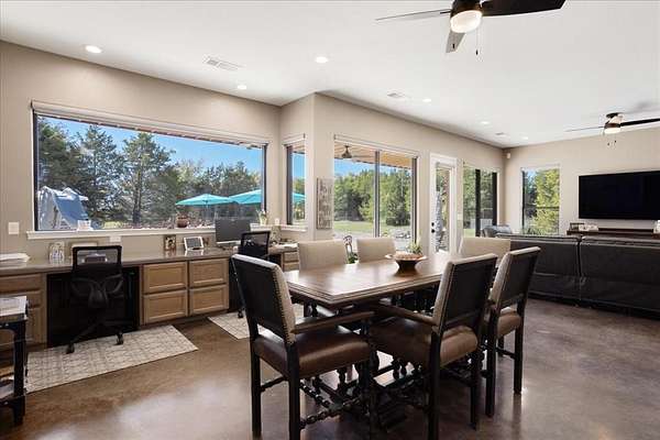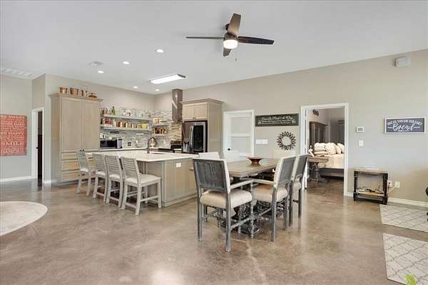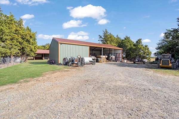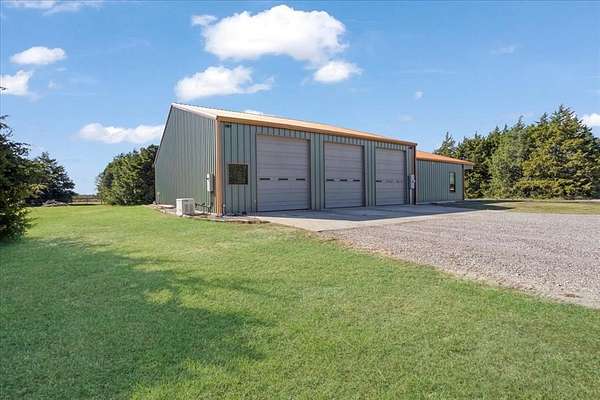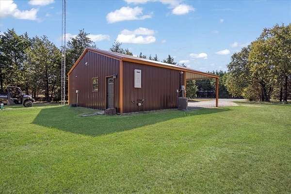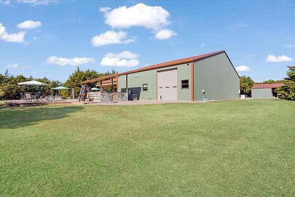 Luxury living plus homesteaders dream all wrapped up in one totally secluded property. Barndos are the trend and this one leaves nothing to the imagination. Open concept layout with modern finishes such as remote controlled shades on the windows and storm shelter built into the primary bedroom. The utility room is to die for with plenty of room for a couple freezers, built in cabinets for pantry and large sink. Off the dining area you will also find a built in 2 person desk with a view of the pool area. In the shop area you will find 4 remote controlled garage doors allowing for easy access. The interior of the shop is skinned with metal giving it a clean sleek feel. Outside you will find ample covered patio for enjoying the pool as well as the covered outdoor kitchen area and a half bath that is accessed from the patio. North od the home you will find another shop with a 20x30 insulated storage area with electricity and 36x30 equipment shed. Behind that there is a 36x36 livestock barn with 4 stalls and storage for hay. Moving toward the front of the property you will find 2 bonus homes with rental potential. One is a 600 sq ft 1 bed 2 bath metal home that is currently tenant occupied as well as a 2022 model 840 sq ft 2 bed 2 bath mobile home with a metal awning and carport built over it. Another great feature for the oudoor enthusiast is the duck slough in the middle of the property that provides great duck hunting action in the winter. This property truly has more to offer than can be put into words so come see for yourself how amazing it really is.