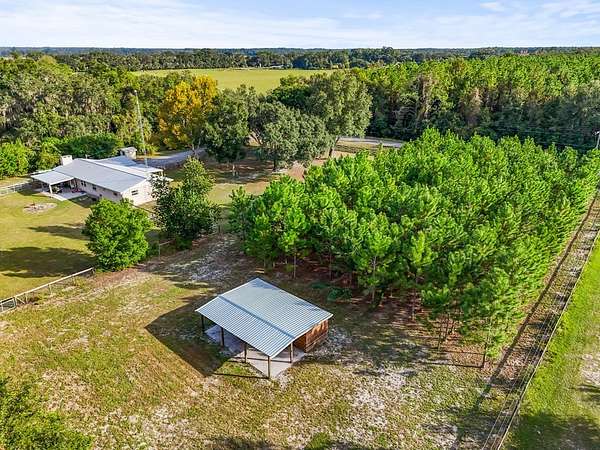 Charming 3 Bedroom, 2.5 Bath Home on 2.5 Acres! This home offers a peaceful country setting with room to grow. Inside, you'll find two living rooms one featuring a cozy brick fireplace along with updates throughout the home, including the kitchen, bathrooms, flooring, electrical, and a Culligan water softener system. A laundry room with a convenient half bath adds functionality, and there is plenty of closet space and storage throughout the home. Outside, the fenced and cross-fenced property features mature trees, planted pines, a powered outbuilding, chicken coop, and a horse stable/barn with two stalls, tack room, power, and water. Relax on the front or back porch and enjoy quiet mornings or evenings in this serene setting. Located just minutes from the amenities of Chiefland and 25 minutes to Cedar Key, this property offers the perfect balance of country charm and convenience. Schedule your private tour today!