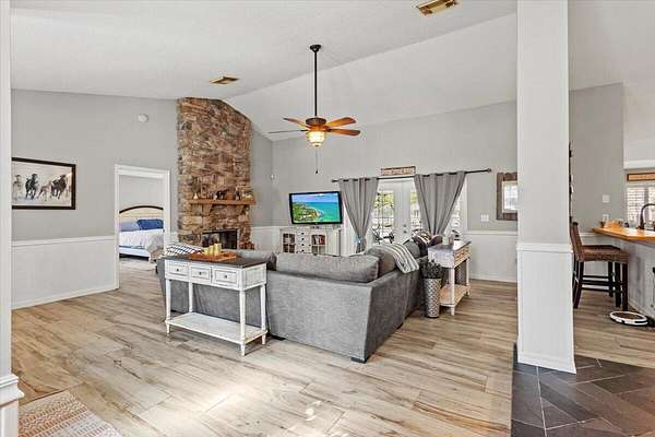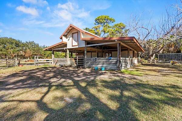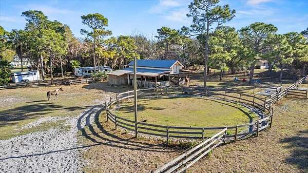 This is a rare opportunity to own an equine paradise in St Lucie Gardens on 3.75 acres located just one mile east of US-1 that makes you feel like you're miles away from civilization, but it's a 5 minute drive to the grocery store, shops, and restaurants. Tranquility awaits at this three bedroom, 2 bathroom, split floor plan configured home equipped with gas stove, water heater, and clothes dryer. Stainless steel appliances and a breakfast nook outfit the kitchen. This property is perfectly situated for the equestrian lifestyle with a 1,258 sqft barn, fully fenced in yard with demised pens and pastures and even a hitching post in front of the home. The long driveway leading to the set back home passes a beautiful, picturesque pond. Prepare for beautiful sunrises and gorgeous sunsets.