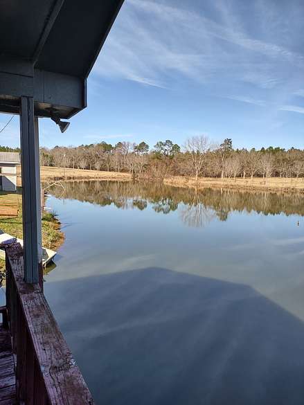 Property has a 2291 sqft 3 bd, 2 bath house with 2 bonus rooms upstairs. The house sits on a 2.4 acre pond where we fish off of a covered porch. Next to the house is a 600 sqft 1 bd, 1 bath detached guest cabin. Property has 4 acres of pecan trees consisting of a mix of mature and young trees.