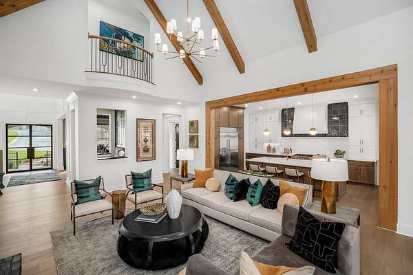 This ELMSDALE is the epitome of understated elegance at 5 bedrooms and 5.5 bath, this home offers exceptional living spaces and luxurious finishes throughout. Set on a spacious acre homesite, this property combines elegance, comfort, and modern design in a highly desirable neighborhood. As you enter the dramatic two story foyer, you'll be immediately captivated by the soaring ceilings and open flow of the home. The vaulted great room is the perfect gathering space, with large windows that flood the room with natural light while offering views of the expansive backyard.