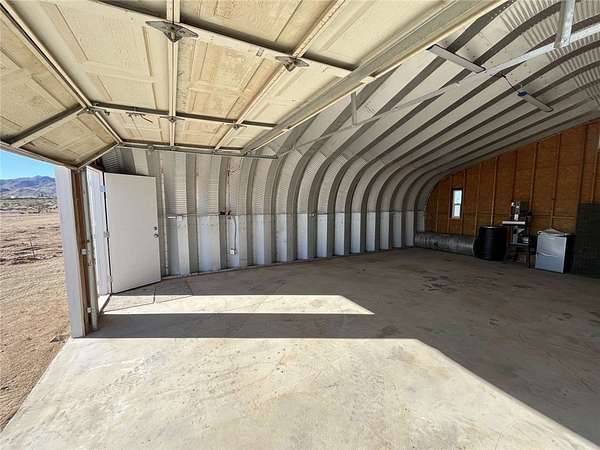 Est $872/mo2.14 acres land, fenced. Coordinates 35.33468 degrees N, 114.03501 degrees W 2,500gallon water tank 200 amp service 100 amp panel in garage fully wired up 50/30/20amp 240v RV power 1500 gallon concrete septic tank 30' x 30' Quonset hut on concrete foundation 2024