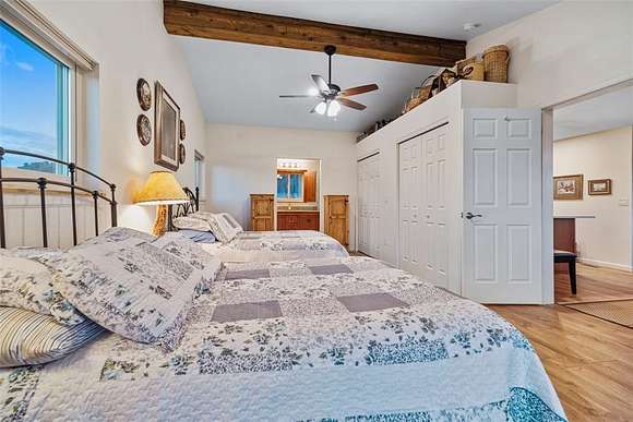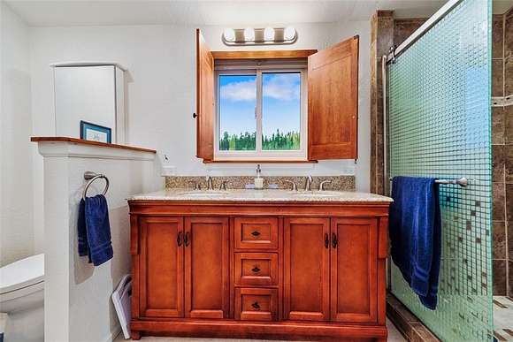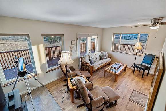 This rustic, 3 level mountain home fits perfectly into its setting. The four acre homesite is backed up to National Forest and has expansive, stunning mountain views. The cabin sits back on the property to maximize the views. Inside the home is bright, modern, open, and recently updated. The main level which is accessible from the lower level and from outside has a great room with a cozy wood stove for those chilly evenings, an updated, open kitchen, dining space, and a full bath. Off to the side is a roomy primary suite with a 3/4 bath and lots of storage. All of this opens up to a huge wrap around deck, perfect for enjoying your morning coffee, watching the sunsets, or entertaining. The upper level has sitting room, a 3/4 bath, a bright, sunny bedroom, and a bonus room that would be the perfect home office space or room for guests. The bonus room opens to a private balcony, great for taking in the stunning views. The lower level which is fully accessible from the outside has a covered entry with a concrete patio. Inside is a tile mud room, laundry room, and a workshop/utility room with plenty of shelving and storage. The rest of the lower level is an enormous living space that would make a great game room, play room, or even more space for guests. Every level has French doors and plenty of windows that bring in the beautiful Colorado landscape and let in so much light. Across the circular, gravel driveway is a two car garage and a shed with plenty of room for your vehicles and all your mountain toys. This beautiful mountain cabin has been completely refurbished and meticulously maintained. In addition to easy access to National Forest, the Stagestop subdivision offers its residents some of the best private fishing in the mountain region. There are over 17 miles of privately stocked river fishing and three stocked ponds. Whether you are looking for a full time residence, a mountain getaway, or a short term rental prospect, don't miss this one.