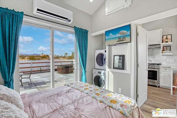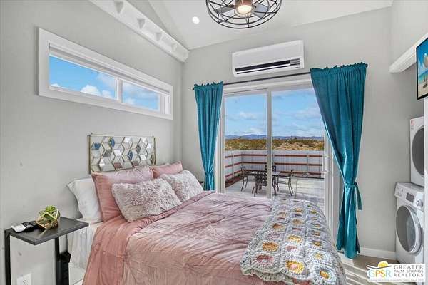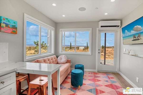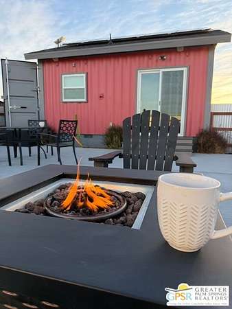 A stylish, custom luxury container home located near Joshua Tree National Park an ideal desert getaway. This cozy yet modern retreat features a private hot tub, fully stocked kitchen, and a fenced backyard designed for ultimate relaxation, complete with a fire pit and BBQ. Set on 2.5 acres of secluded desert land, the property offers exceptional privacy, breathtaking sunrise views, and world-class stargazing in a true dark-sky area. Designed to capture sweeping views of the open desert and iconic Goat Mountain, the home is both photo-worthy and thoughtfully crafted for comfort and serenity. Located just off a paved road, the property offers ample open land with potential to add additional structures, homes, or amenities. Currently operating as a successful vacation rental please call ahead to schedule your showing.