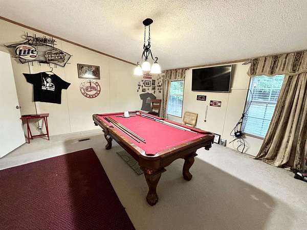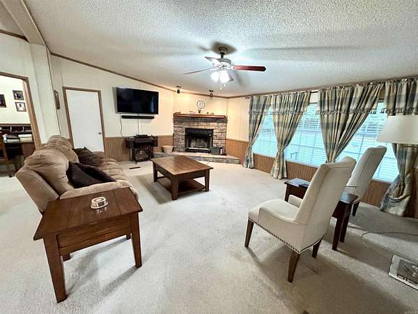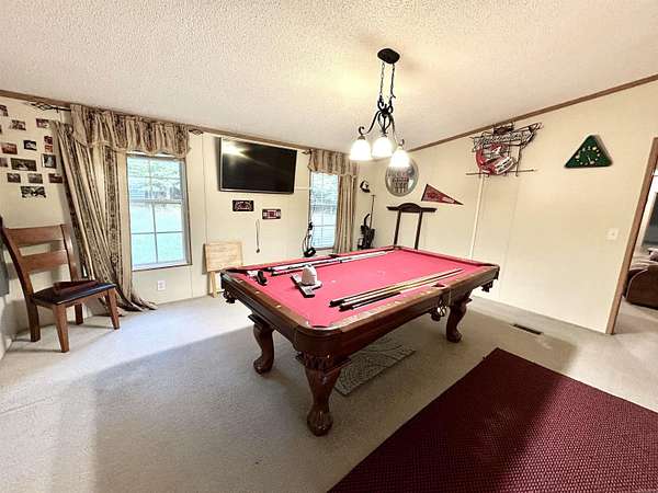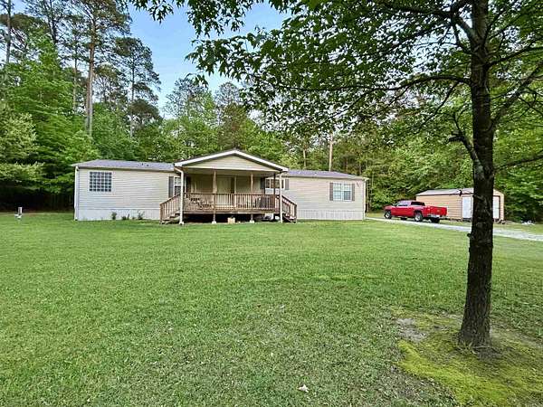 Love watching deer? Looking for wooded land? Looking for privacy? Here it is! This well maintained home is nestled among 6.61 acres of mixed hardwoods and pines. So private, yet it's just a couple miles from the highway and quick access to I-30. This comfortable and spacious home features a split floor plan with large primary bedroom, which is currently being used as a game room. The primary bathroom has double sinks, soaking tub, separate shower and walk-in closet. The living area features a wood-burning fireplace for those cold winter nights, large windows for natural light and wildlife viewing, a corner office and is open to the kitchen. The kitchen has no shortage of cabinets or counter space and offers a breakfast bar and built-in glass door hutch. Other amenities include new water heaters, laundry room, metal roof, leaf guard gutters, covered front porch, permanent foundation and storage building. See agent remarks.