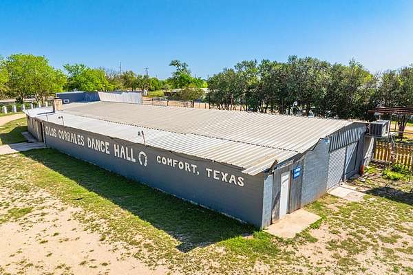Positioned along the Hwy 27 in Comfort, this 4-acre commercial opportunity offers exceptional visibility and access in one of the Hill Country's most desirable and fast-growing areas. Located next to Comfort RV Park, the property benefits from steady traffic flow and strong local and visitor presence. The site features multiple existing structures, including a spacious dance hall and additional buildings, providing a flexible footprint for redevelopment, restoration, or adaptive commercial use. Utilities are already in place with well, septic, and electricity connected, giving investors a valuable head start on future improvements. Full disclosure: the main dance hall structure experienced flooding during the July 4th event, and the property is being offered as-is, with land and improvements conveying at closing. This presents a unique opportunity for buyers looking to reposition or reimagine a well-located commercial tract. With its prime highway frontage, usable acreage, and existing infrastructure, this property is ideal for a variety of uses-whether you're envisioning a venue revival, retail concept, storage, or a long-term land investment in the thriving Comfort market.