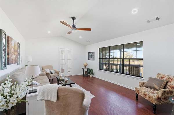 Welcome to this beautiful 2015-built home sitting on 5 fully fenced acres, perfect for anyone looking for peace, privacy, and room to roam! This 3-bedroom, 2-bath home offers the best of modern comfort and country charm. As well as a built in safe room for tornado shelter or for your Ammo and firearms. Comes with a sauna in the house!