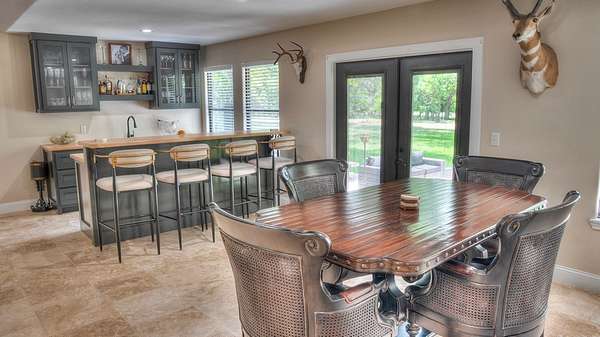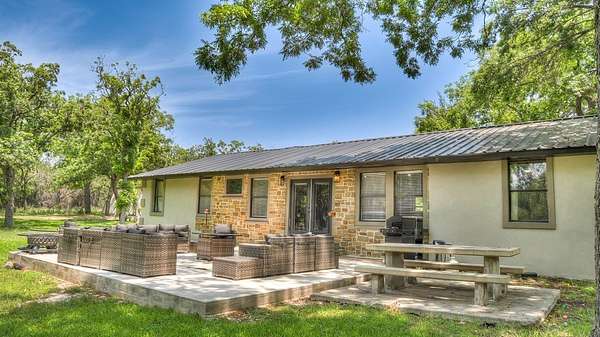 This exceptional Hill Country estate offers the rare combination of space, privacy and refined craftsmanship on 13.85 acres. The expansive 3280 +/- sq. ft. home is thoughtfully designed for both comfortable living and effortless entertaining. Inside, you'll find 4 bedrooms, 3 bathrooms, and a private office area, all finished with impeccable attention to detail. High-quality materials shine throughout, including gorgeous granite surfaces, designer tile accents, and 18x18 travertine tile flooring throughout the main living areas. Custom cabinetry with premium features and built-ins elevates the functionality and style at every turn! The primary suite is a true retreat, incorporating the office and utility area and featuring an exceptionally large walk-in closet with custom built-ins. The layout provides privacy and convenience while maintaining a seamless flow through the home. The level, park-like land offers a generous expanse of lush turf grass and is dotted with mature pecan and live oak trees. Additional improvements include a detached storage building, a large barn on a slab, a green houseand a dedicated garden area. Owners enjoy access to Leakey Springs through HOA park.
